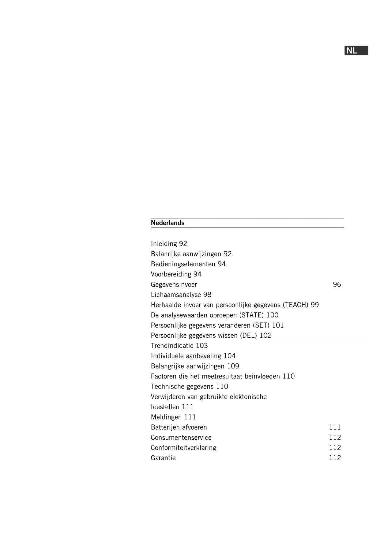 Wij danken u voor de aankoop van deze Soehnle lichaamsanalyse-weegschaal. Dit merkproduct zal u helpen bij de evaluatie van uw lichaamstoestand.