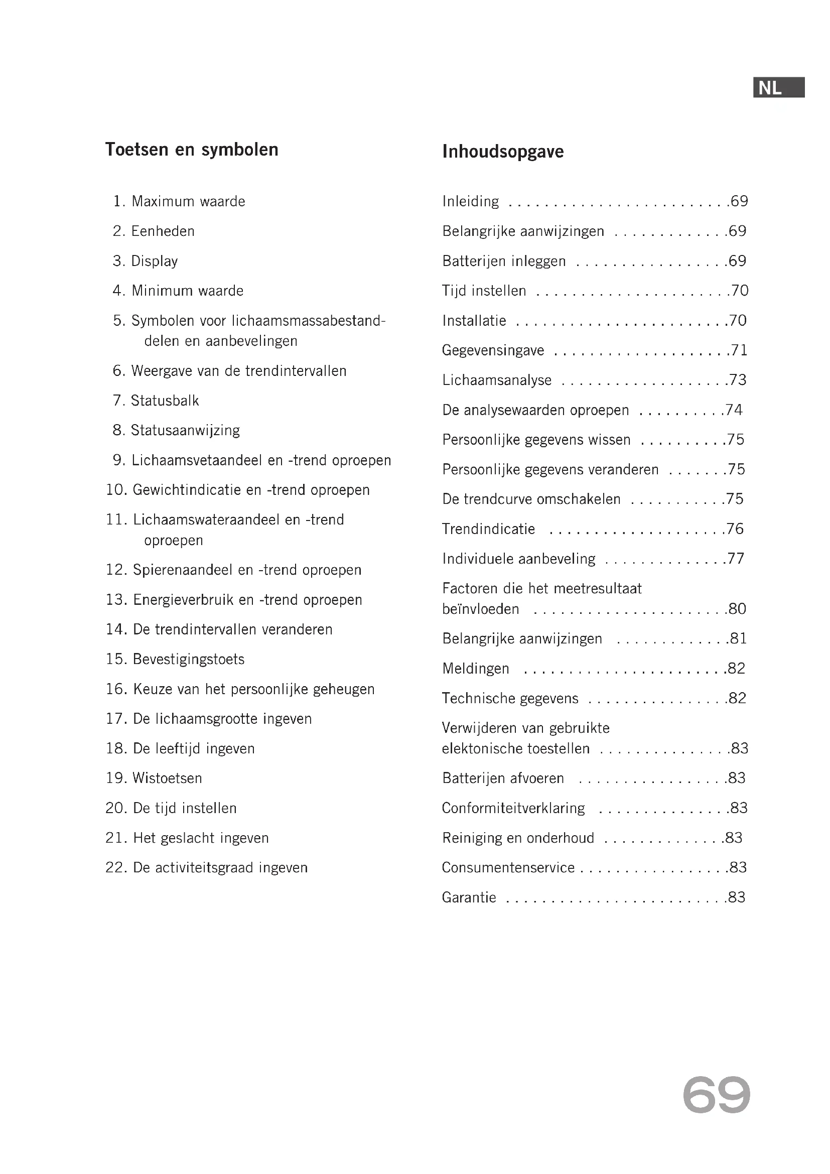 50% 6+5% 7 + 10 % hoog Energieverbruik 8+15% 9> +15% Afwijking van uw persoonlijke, normale waarde Factoren die het meetresultaat beïnvloeden BA_117499_61400_FS5_NL 28.08.2008 17:22 Uhr Seite 81NL