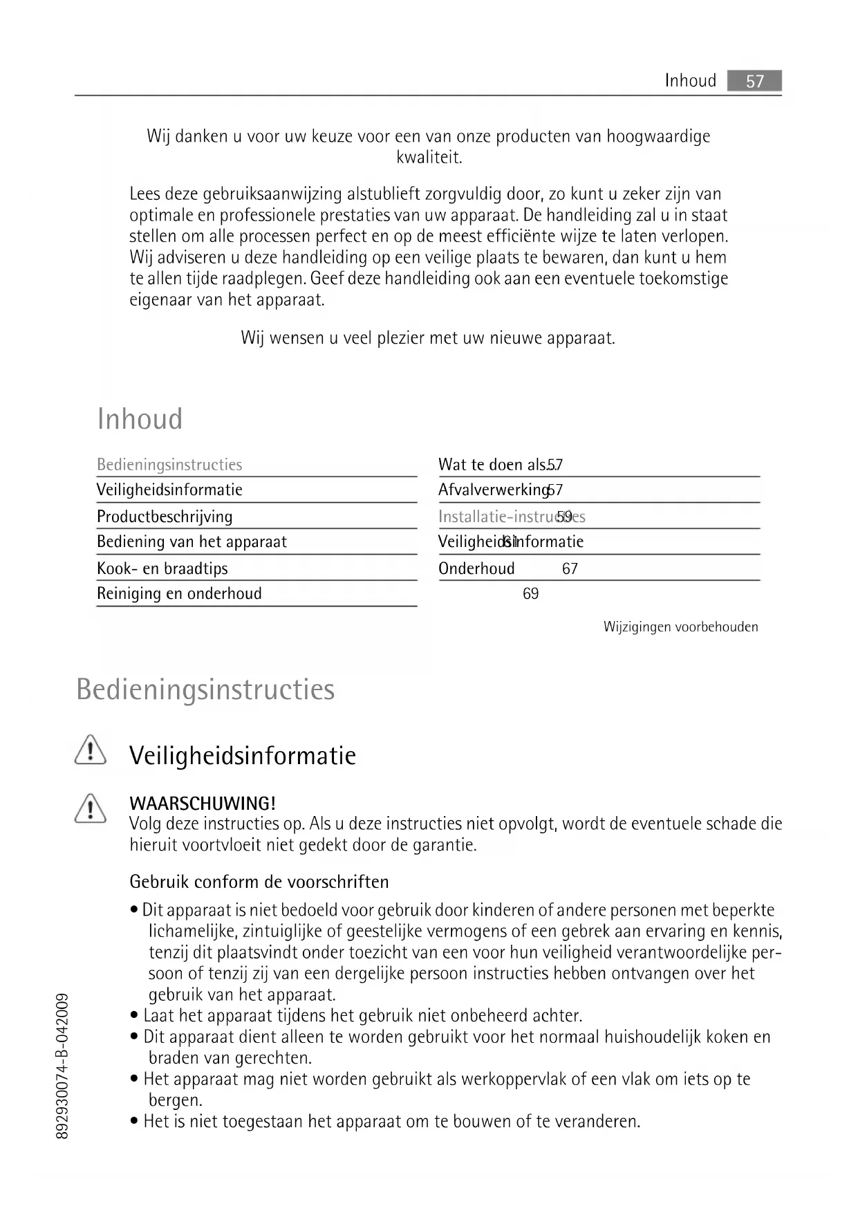 - Dit apparaat dient alleen te worden gebruikt voor het normaal huishoudelijk koken en braden van gerechten.