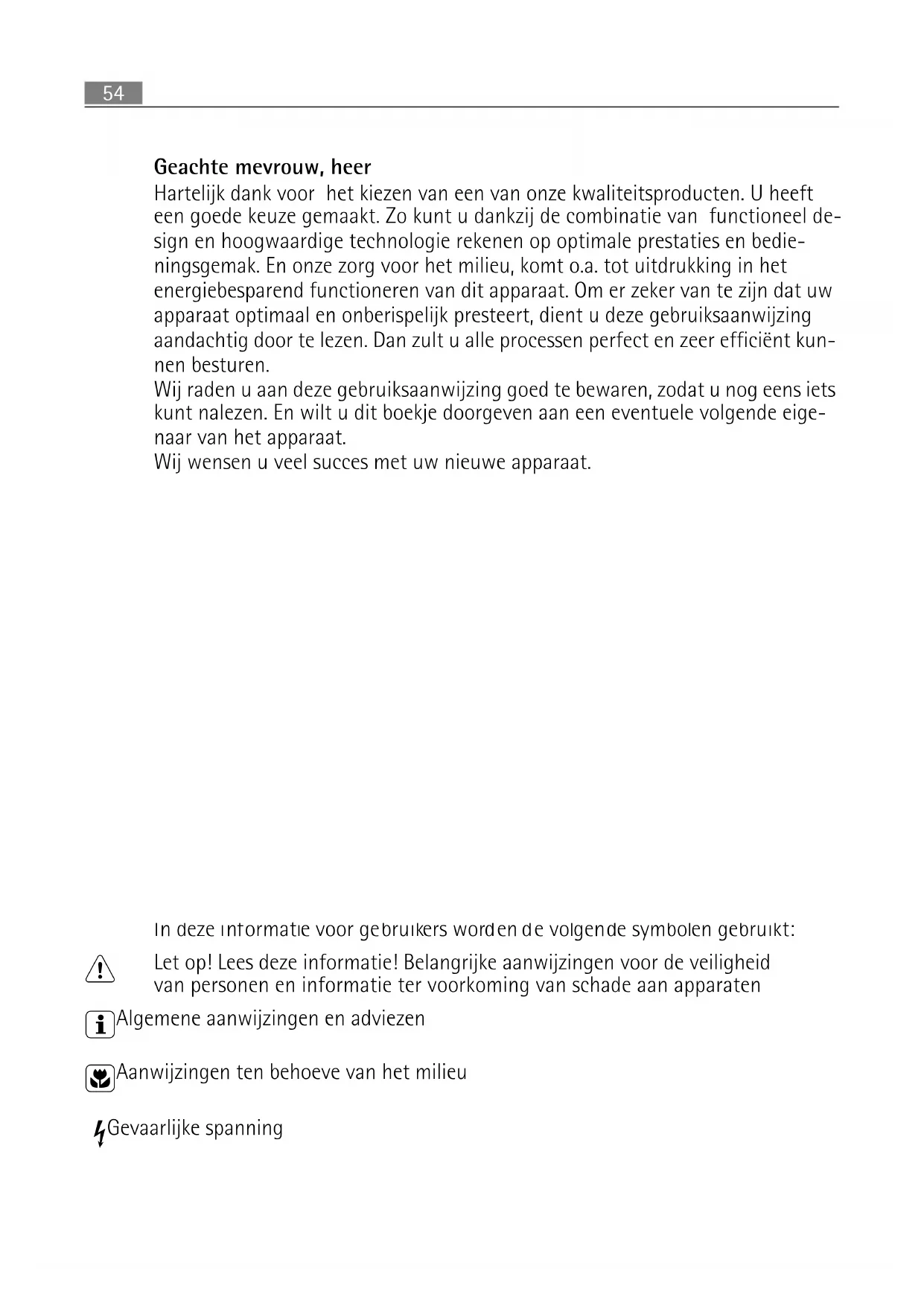Hartelijk dank voor het kiezen van een van once kwaliteitproducten. U hebft een goede keuze gemaatk. Zo kurz u dankzij de combinatie van functioneel design en hoogwaardige technologie rekenen op optimale prestaties en bediiningsgemak. En once zorg voor het milieu, komt o.a. tot uitdrukking in het energiebesparend functioneren van dit apparaat. Om er zeker van teijken dat uw apparaat optimaal en onberispelijk presteert, dient u deze gebruiksaanwijzing aandachtig door te lezen. Dan zult u alle processen perfect en zeer efficient kunnen besturen.