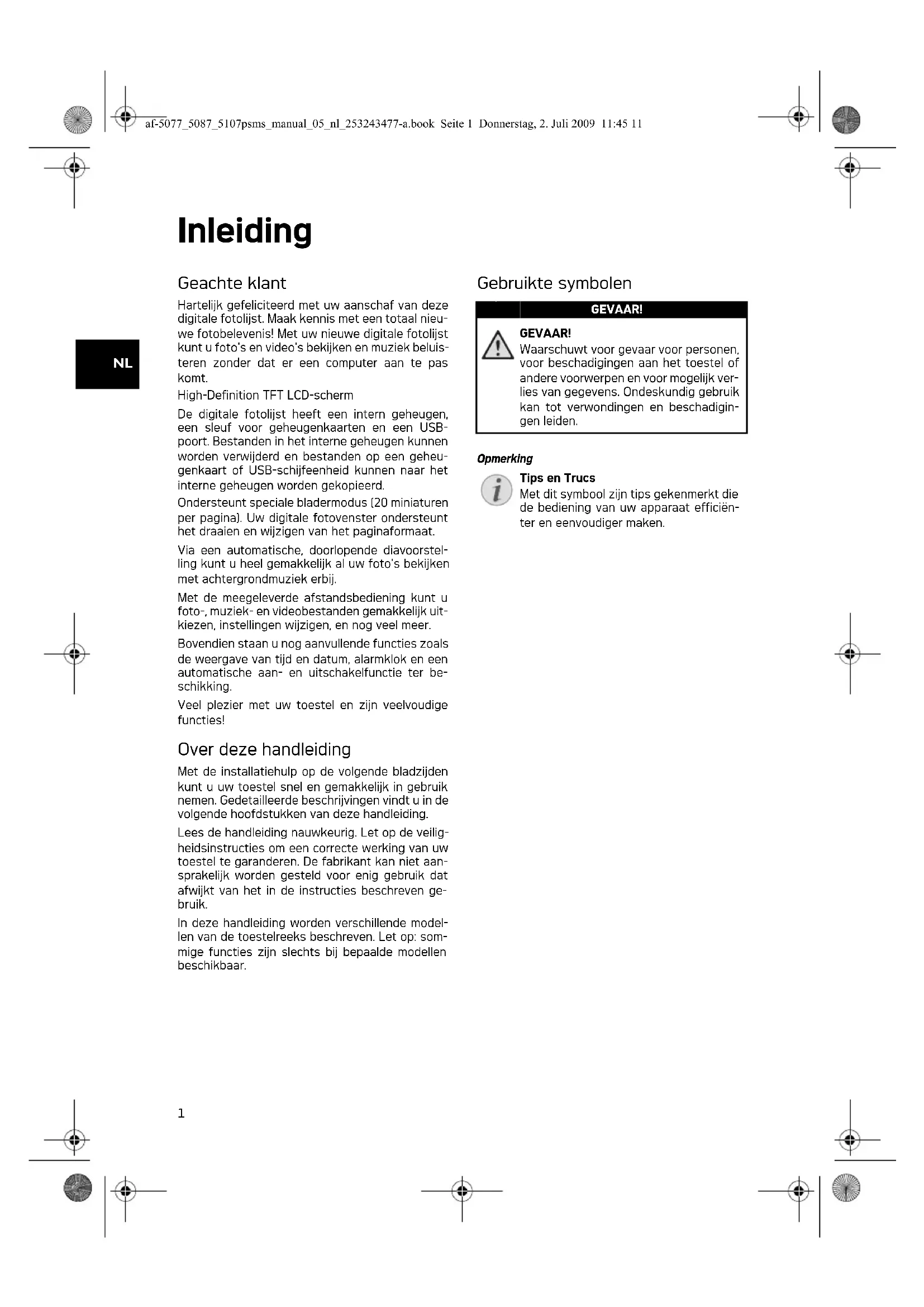 Met dit symbool zijn tips gekenmerkt die de bediening van uw apparaat efficiënter en eenvoudiger maken.