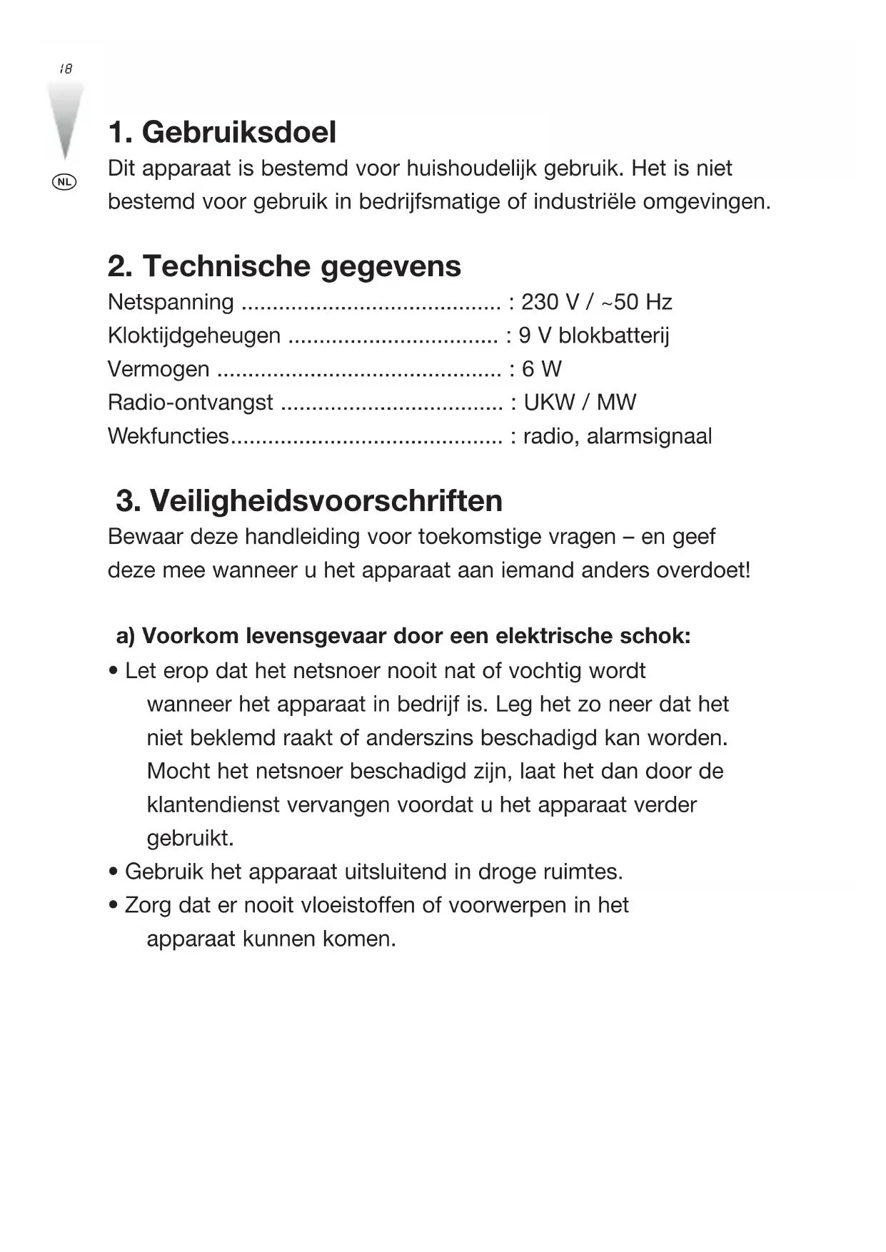 Bewaar deze handleiding voor toekomstige vragen – en geef deze mee wanneer u het apparaat aan iemand anders overdoet! a) Voorkom levensgevaar door een elektrische schok: