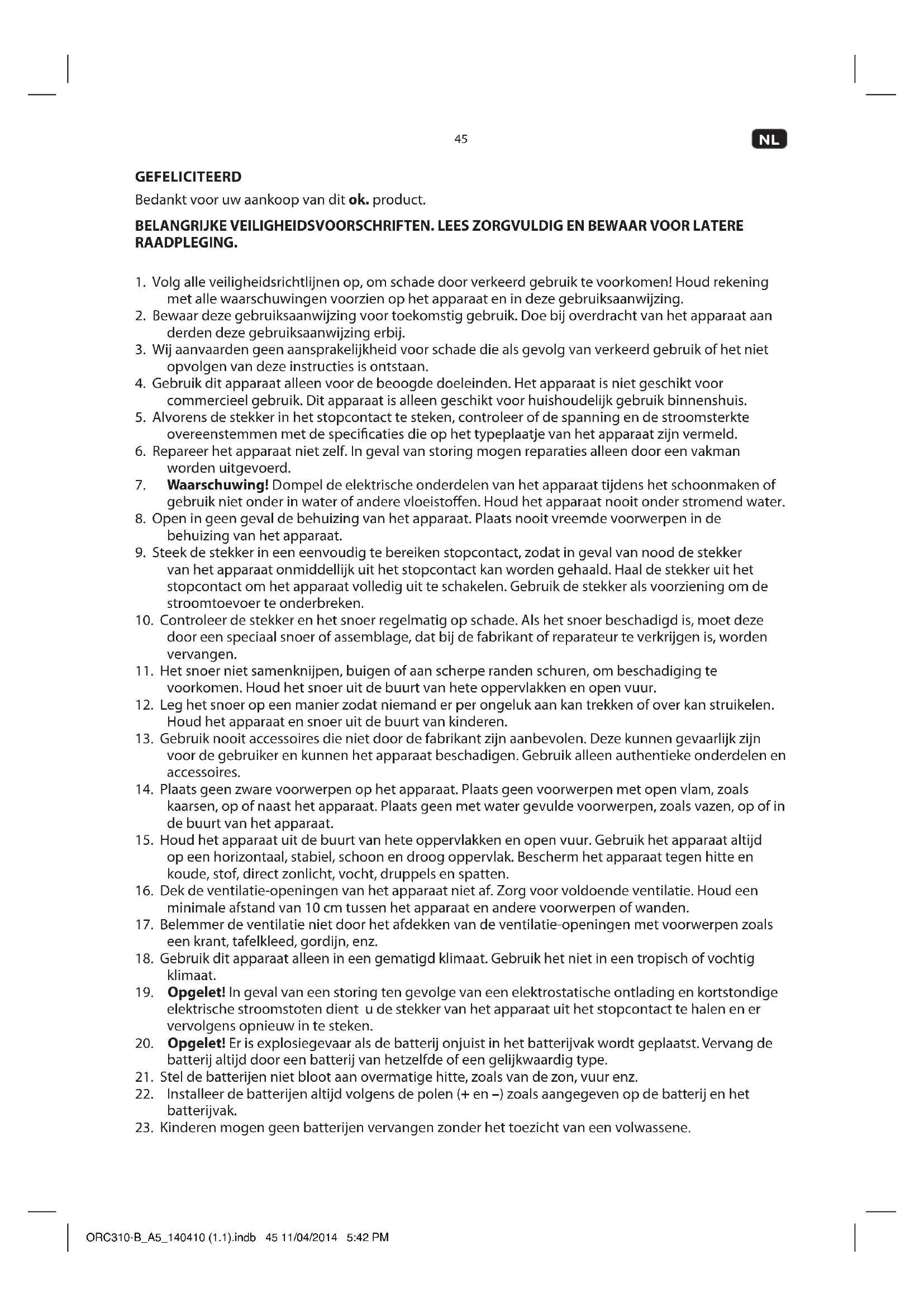 GEFELICITEERD Bedankt voor uw aankoop van dit ok. product. BELANGRIJKE VEILIGHEIDSVOORSCHRIFTEN. LEES ZORGVULDIG EN BEWAAR VOOR LATERE RAADPLEGING.