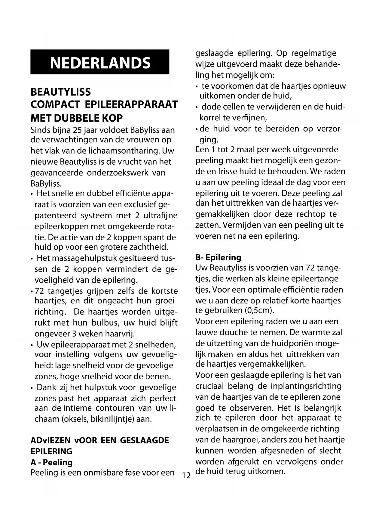 - Beautyliss van BaByliss uitsluitend voor het epileren gebruiken, met naleving van de instructies in deze handleiding.