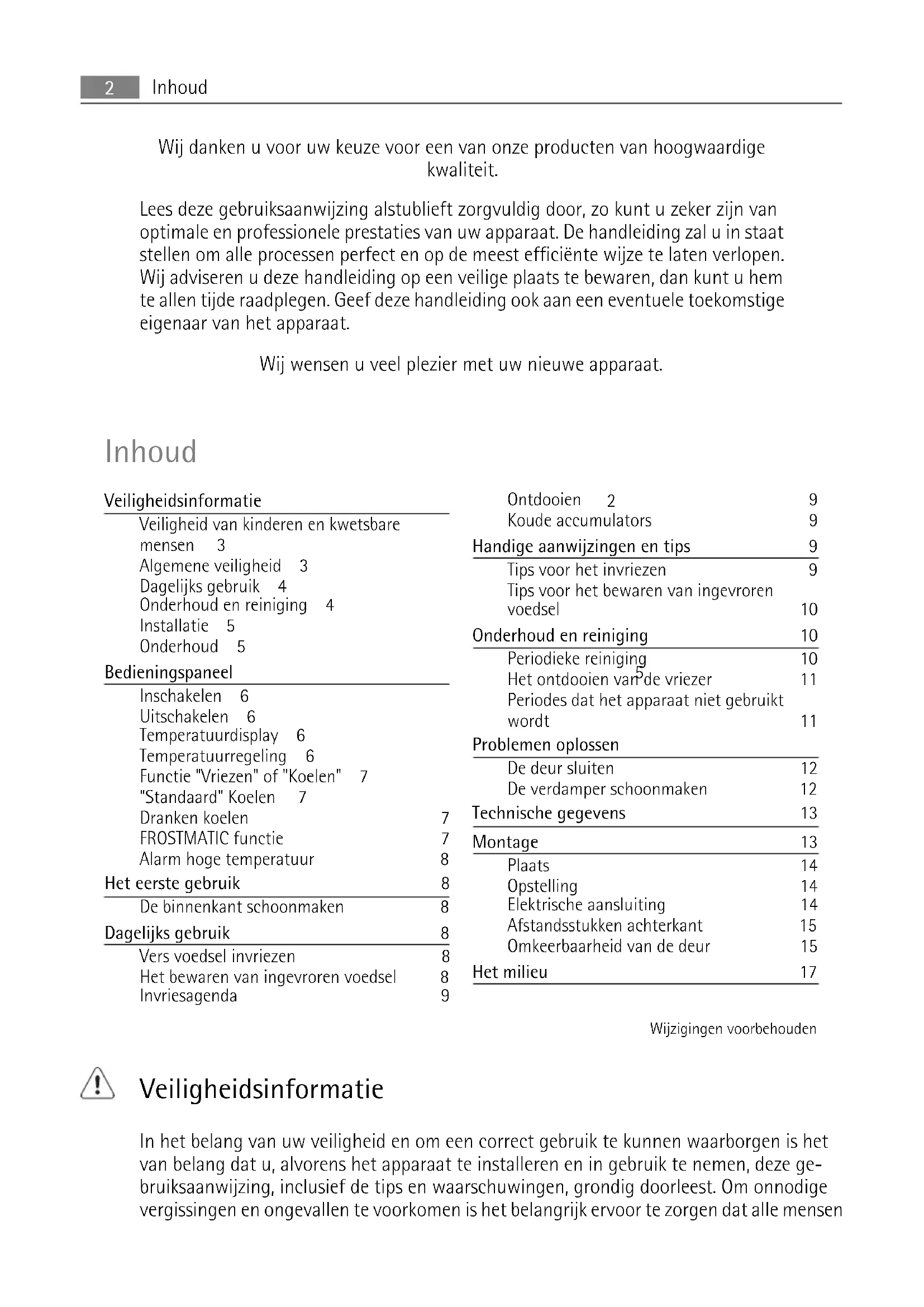| Tips voor het invriezen | 9 |
