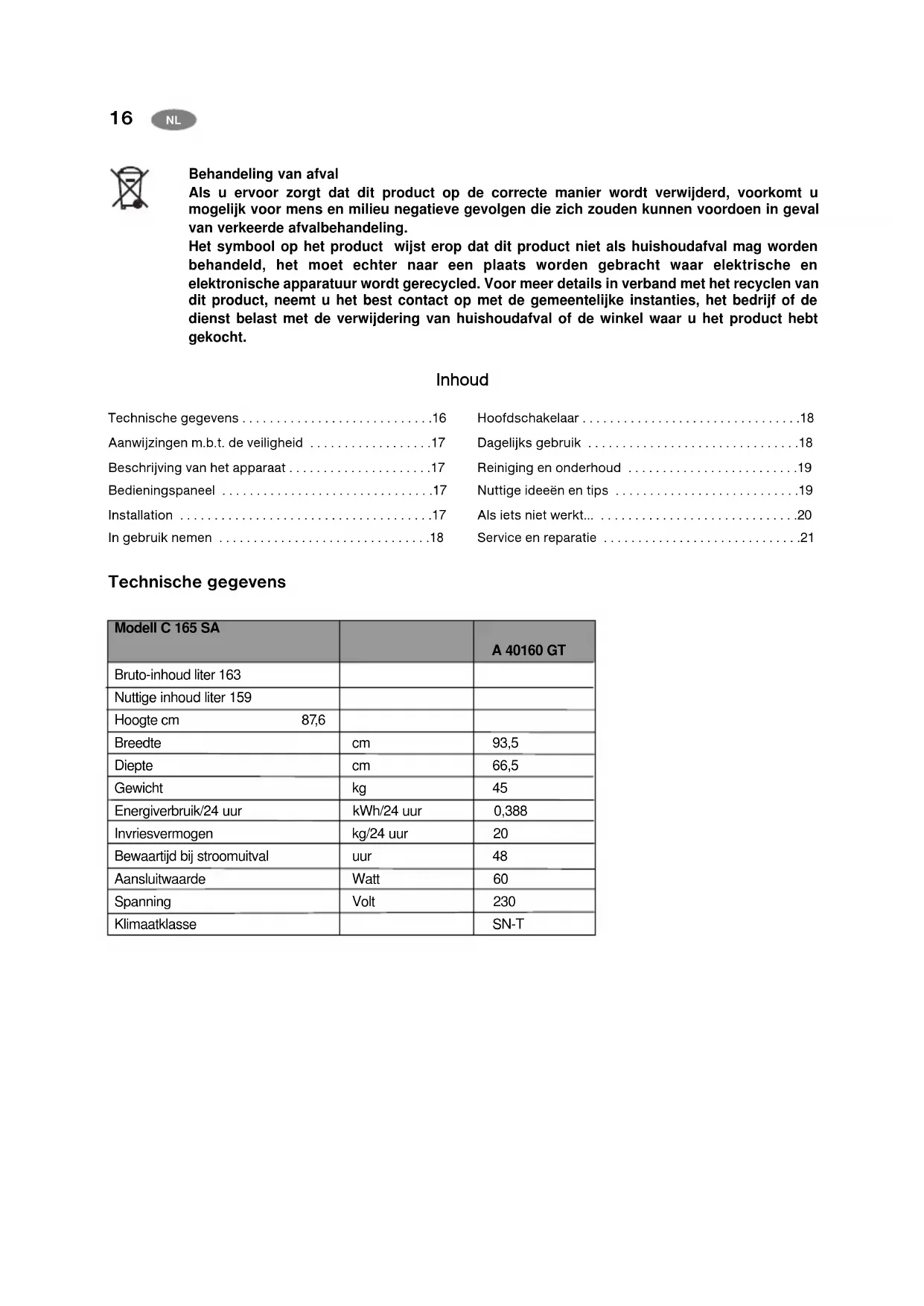 | Nuttige inhoud liter 159 | ||