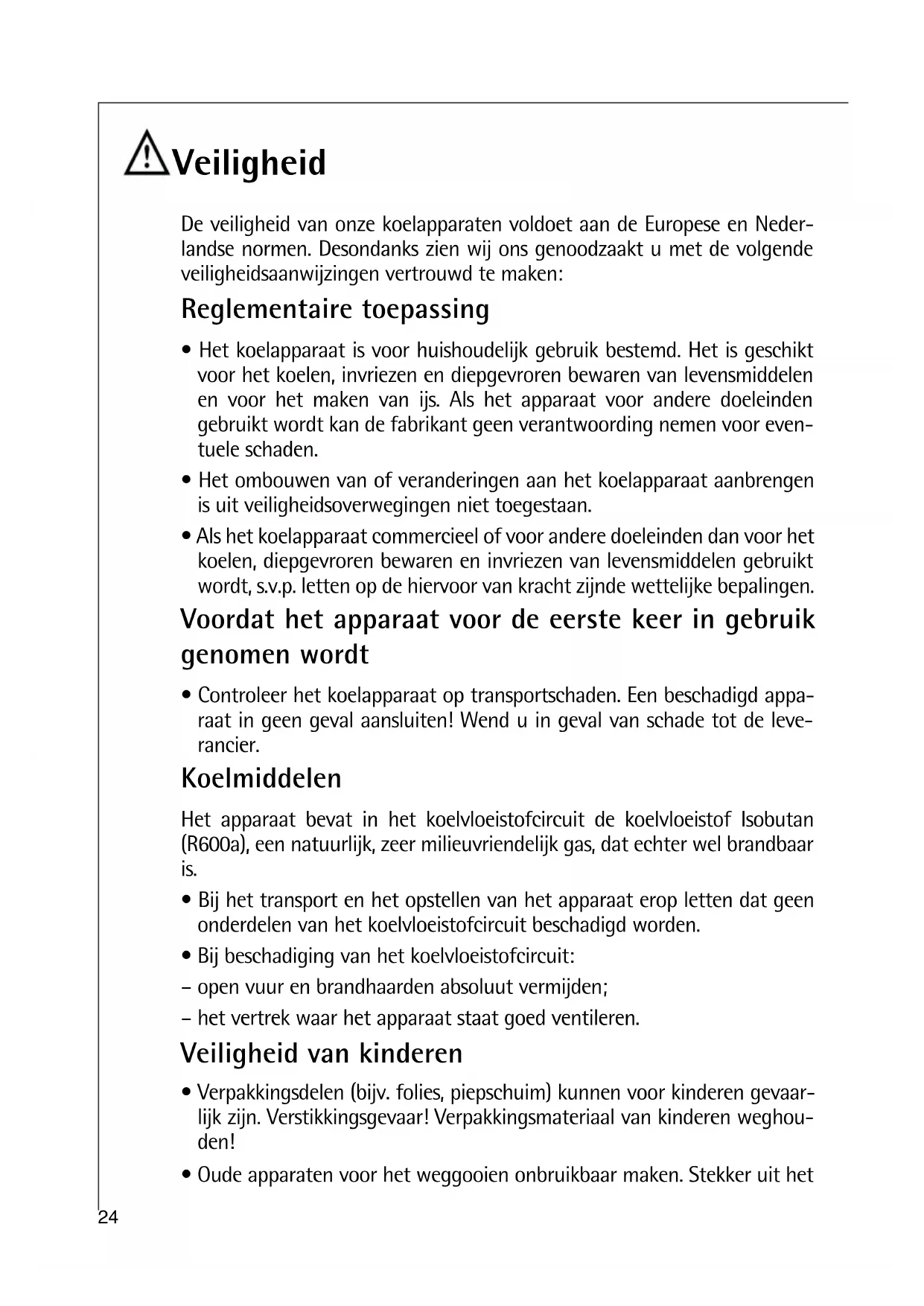 Deeiligheid van onze koelapparaten voldoet aan de Europese en Nederlandse normen. Desondanks zien wij ons genoodzaakt u met de volgendeeiligheidsaanwijzingen vertrouwd te make: