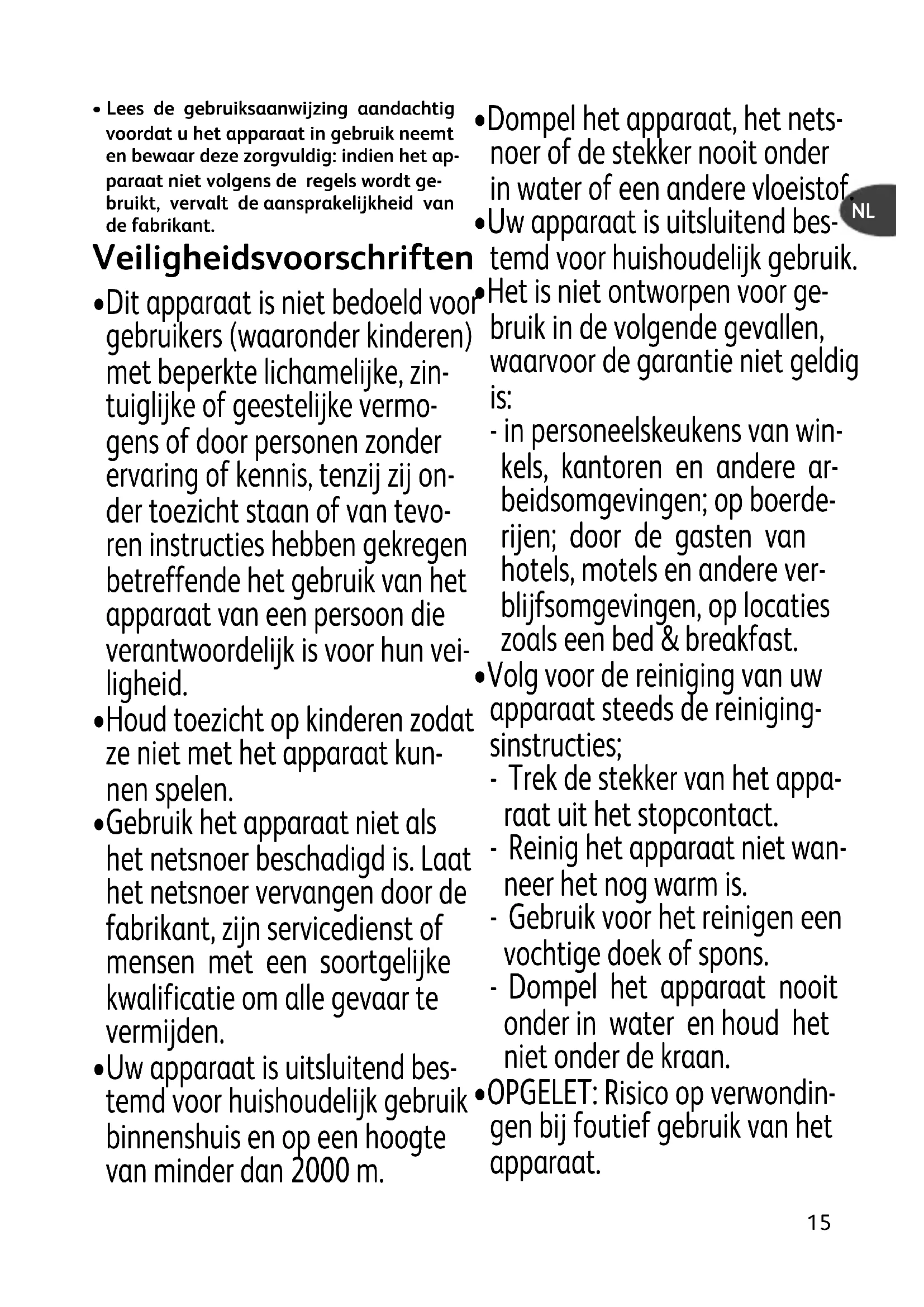 - Uw apparaat is uitsluitend bes- temd voor huishoudelijk gebruik.