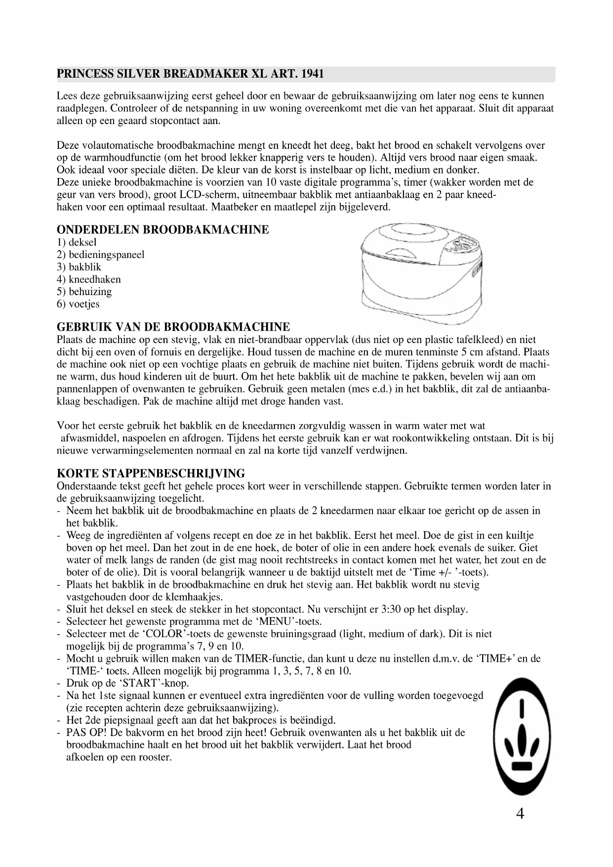 GEBRUIKSAANWIJZING Silver Breadmaker XL 151941 PRINCESS