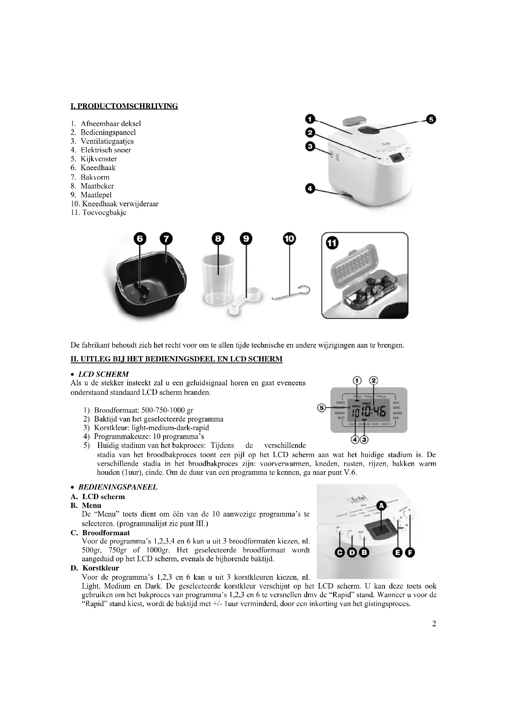 ALGEMEEN: Het resultaat dat u betracht met deze broodbakmachine hangt van veel factoren af. Zorg er STEEDS voor dat alle ingredienten vers�n, op kamertemperatuur zich en gebruik de juiste hoeveelheden.