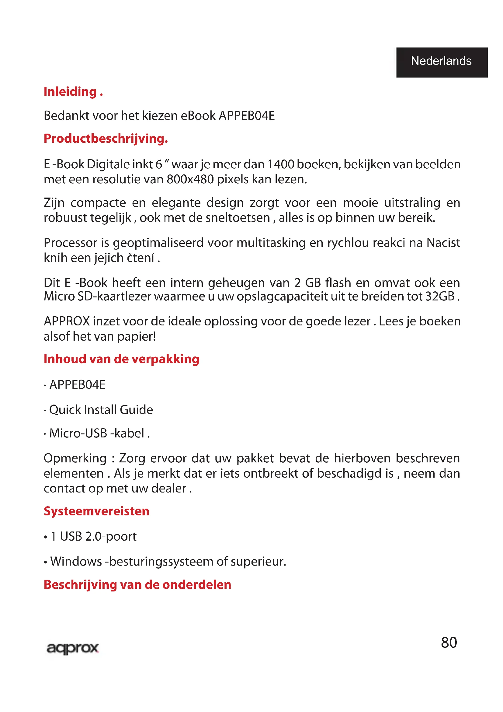 APPEB04E - E-reader Approx - Gratis gebruiksaanwijzing en handleiding