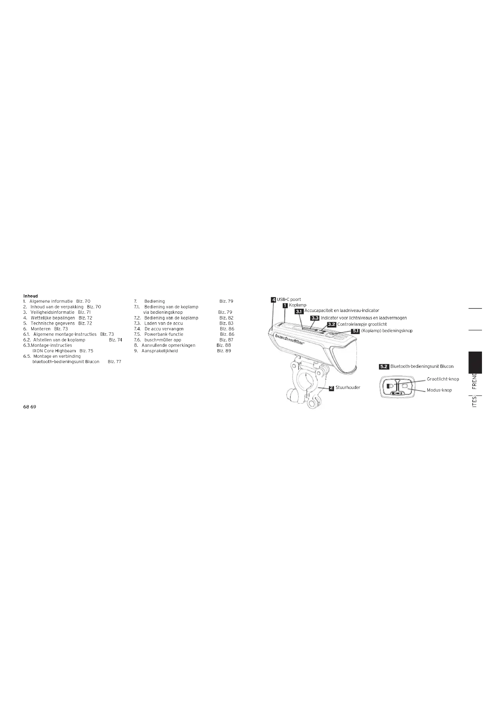 Koplamp IXON Core gastrointestinal | Stuurhouser | Bluetooth-bediingsunit Blucon met twee bevestigsrubbers | Optionale netadapter en USB-C-kabel | Montage - en begruliershandleiding