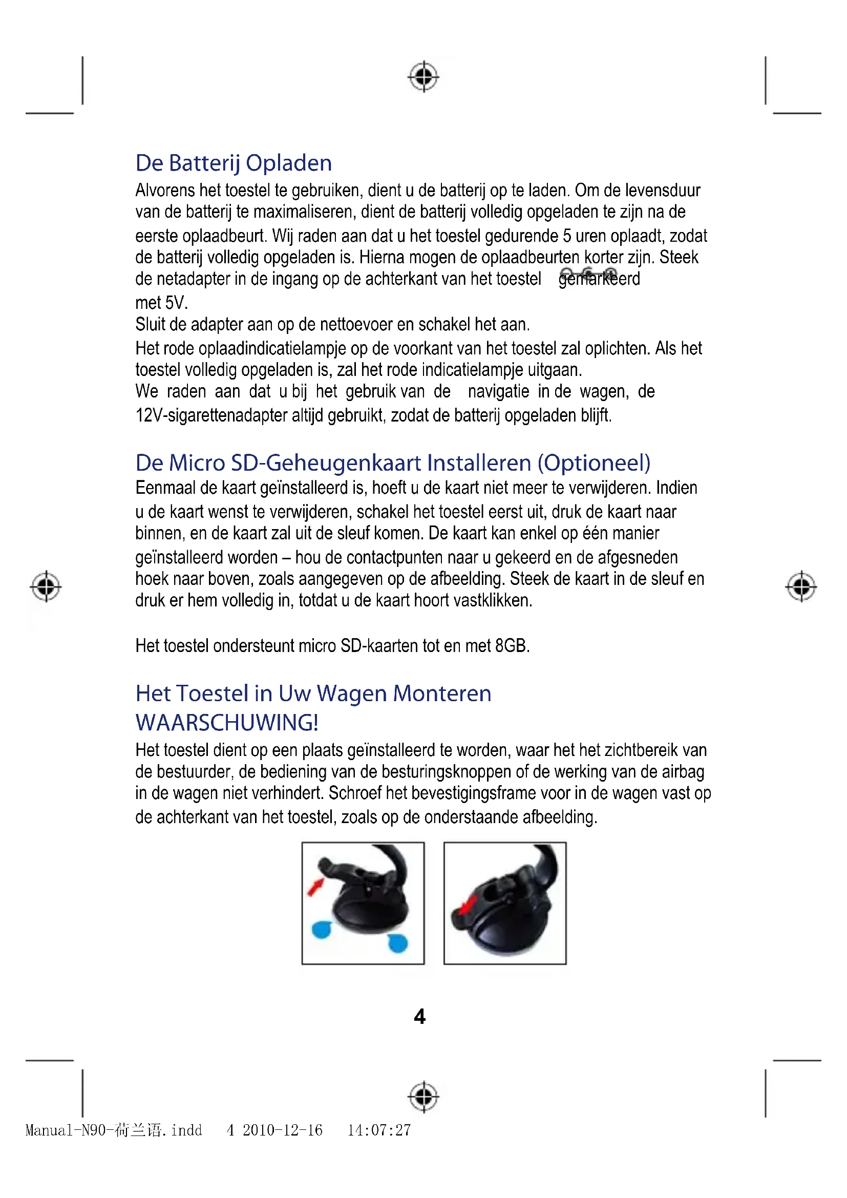 Het Toestel in Uw Wagen Monteren