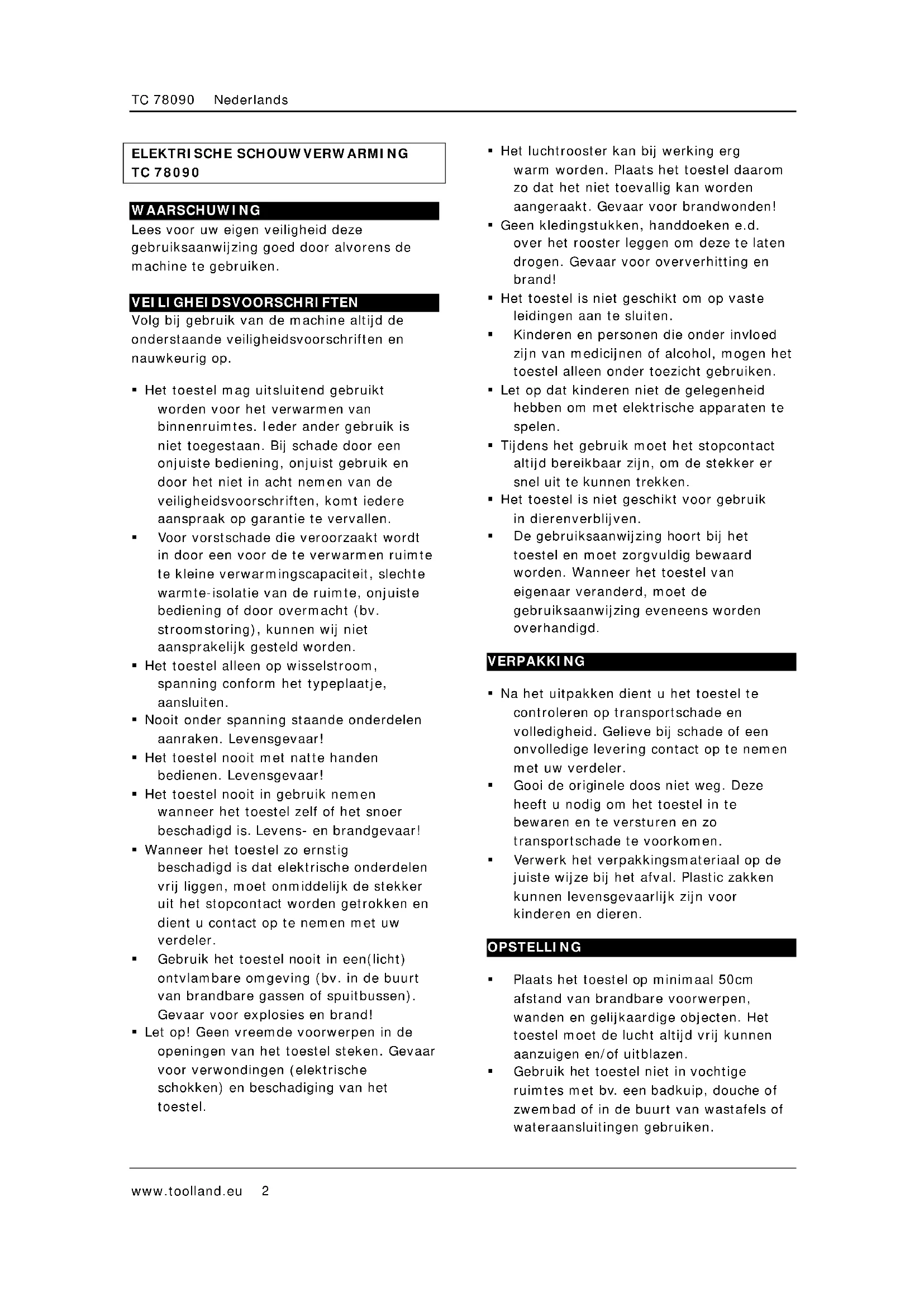 GEBRUIKSAANWIJZING TC78090 Toolland