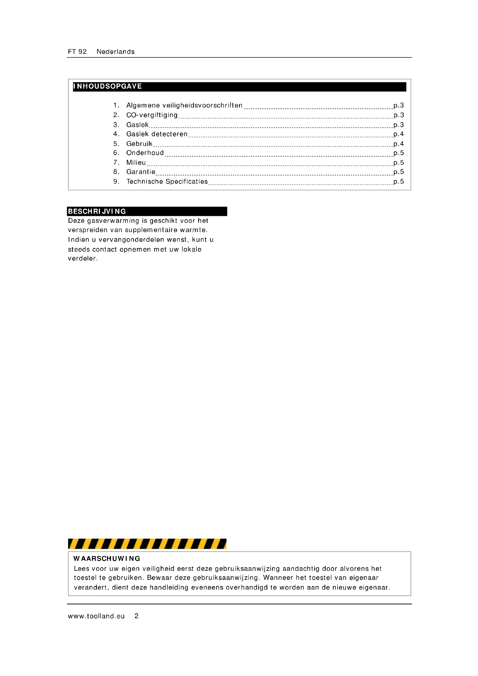 GEBRUIKSAANWIJZING FT 92 Toolland