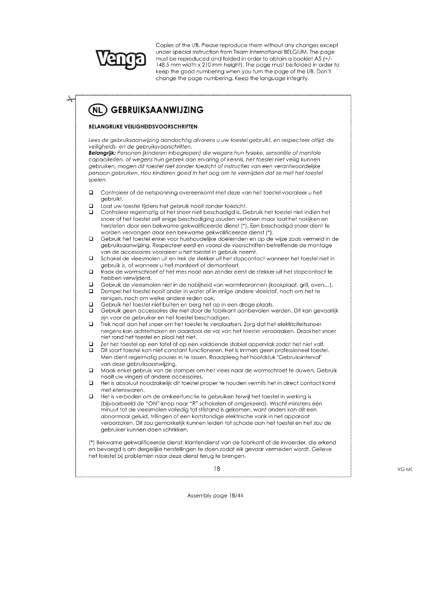 GEBRUIKSAANWIJZING VG MGR 1 Venga
