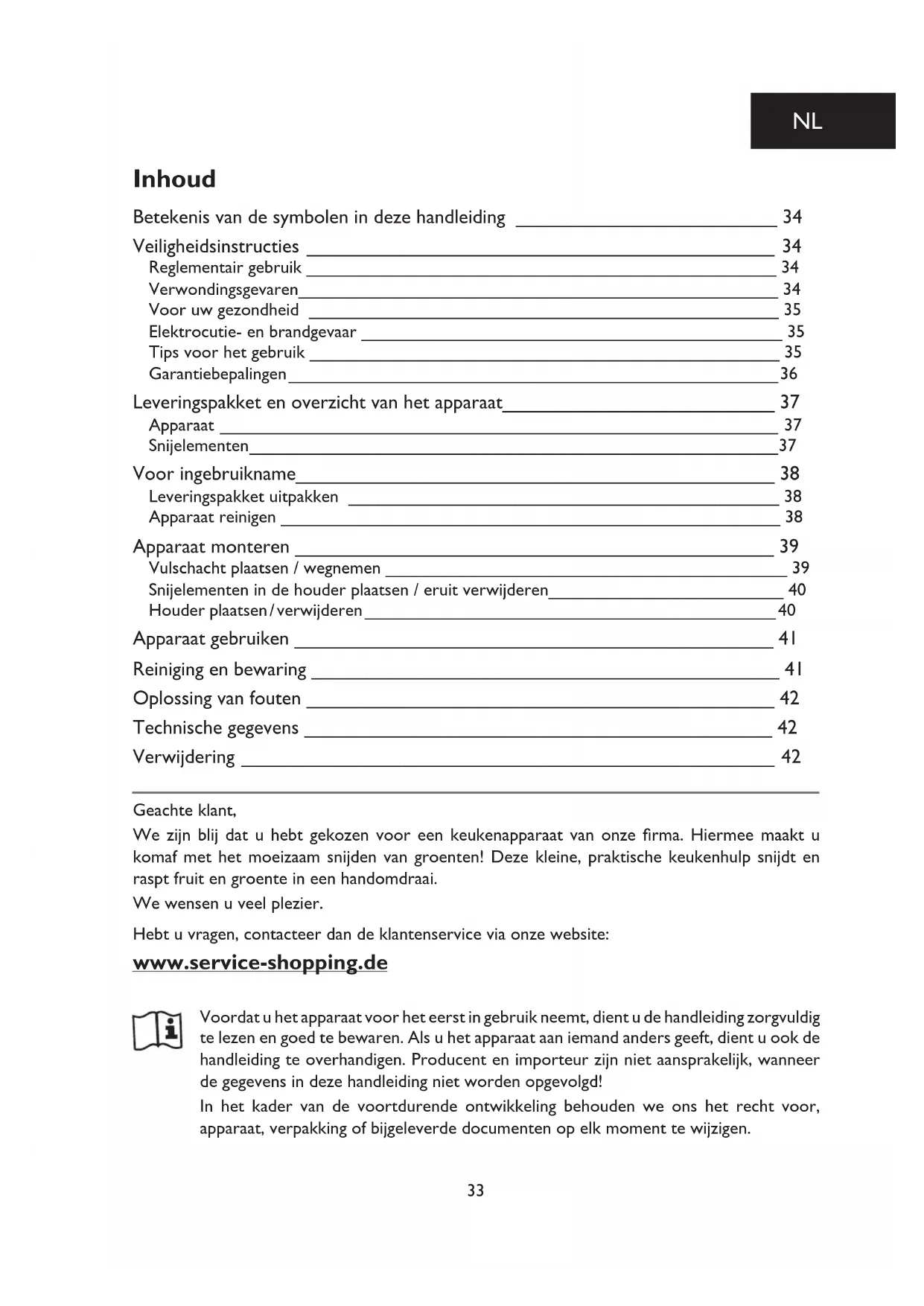 We waren blij dat u hebt gekozen voor een keukenapparaat van once firma. Hiermee maakt u komaf met het moeizaam snijden van groenten! Dezekleine, praktische keukenhulp snijdt en raspt fruit en groente in een handomdraai.