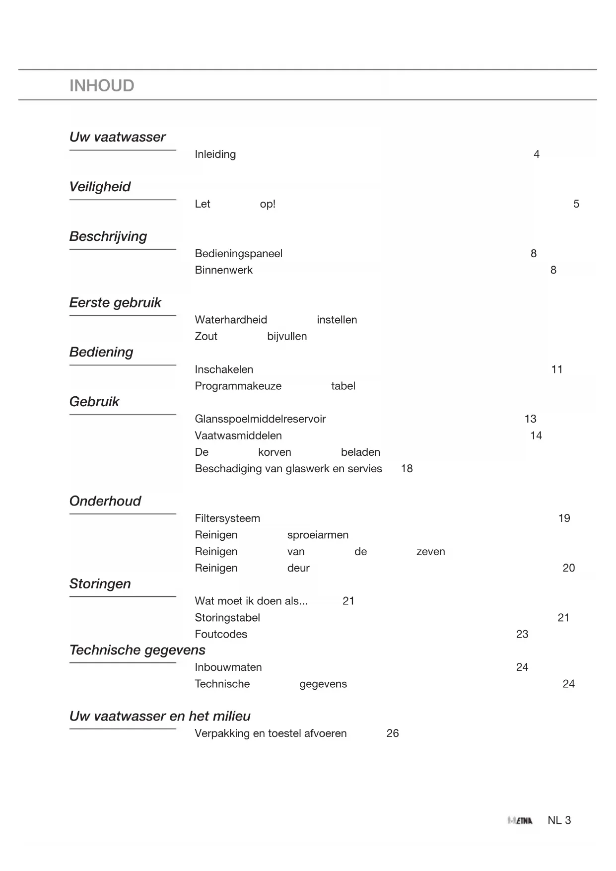 - Vermijd contact met huid en ogen. Houd bij geopende deur van de vaatwasser kinderen uit de buurt. VEILIGHEIDNL 7