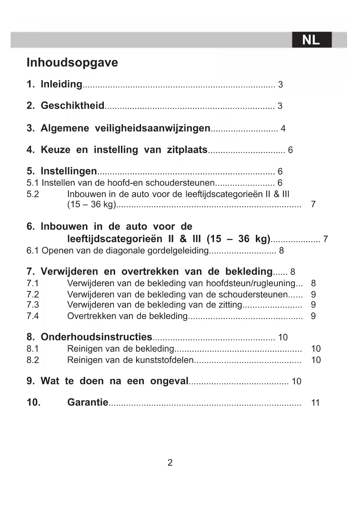 leeftijdscategorieën II & III (15 – 36 kg).................... 7