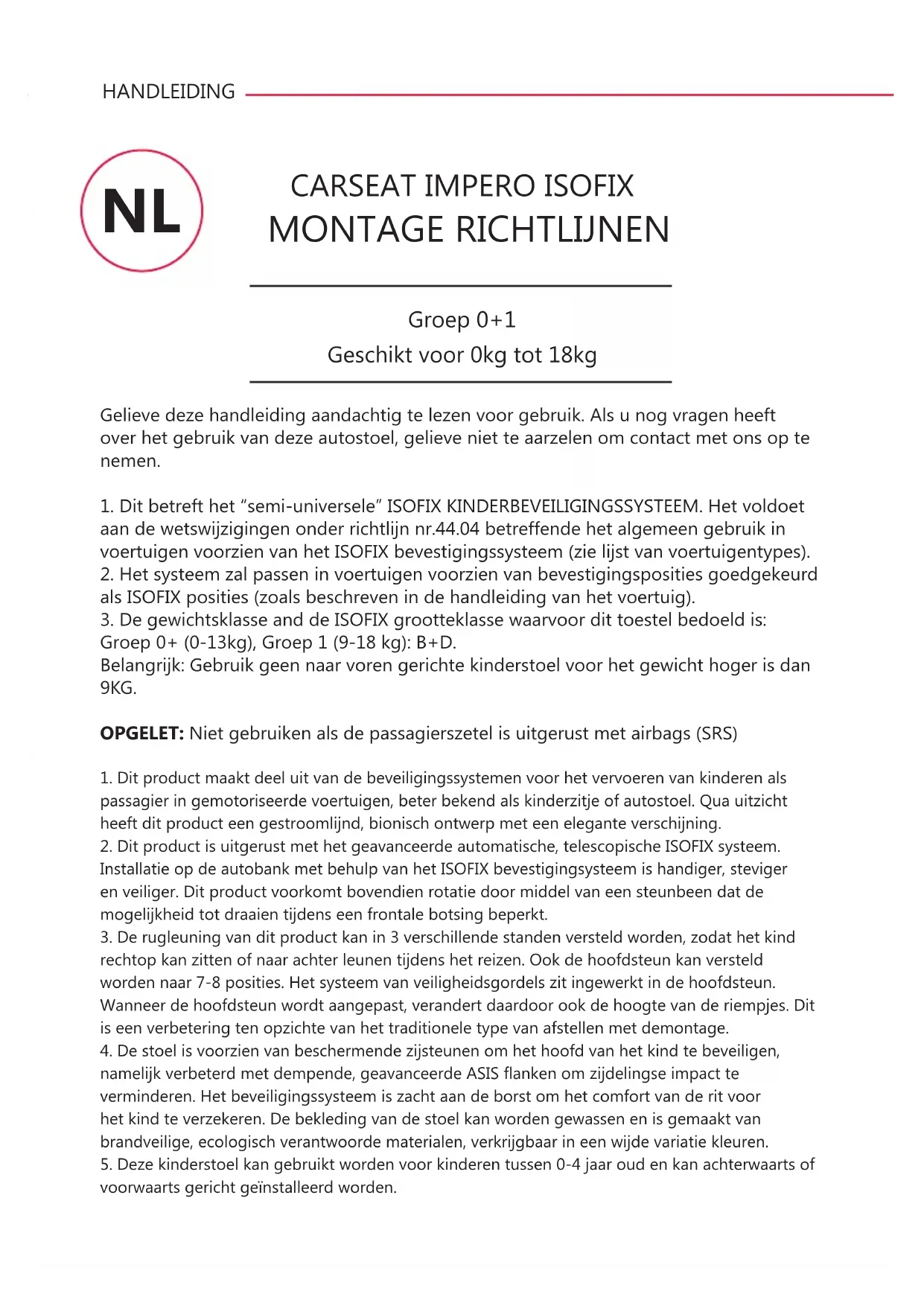 GEBRUIKSAANWIJZING BN3501 Impero Isofix Baninni
