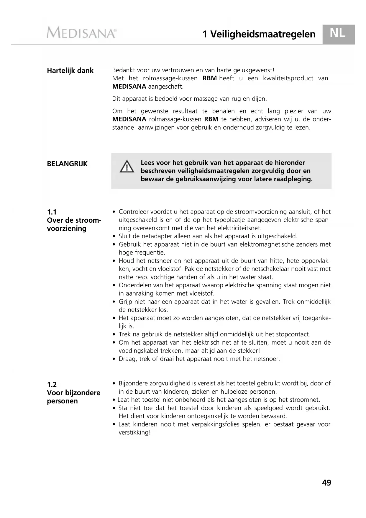GEBRUIKSAANWIJZING RBM MEDISANA