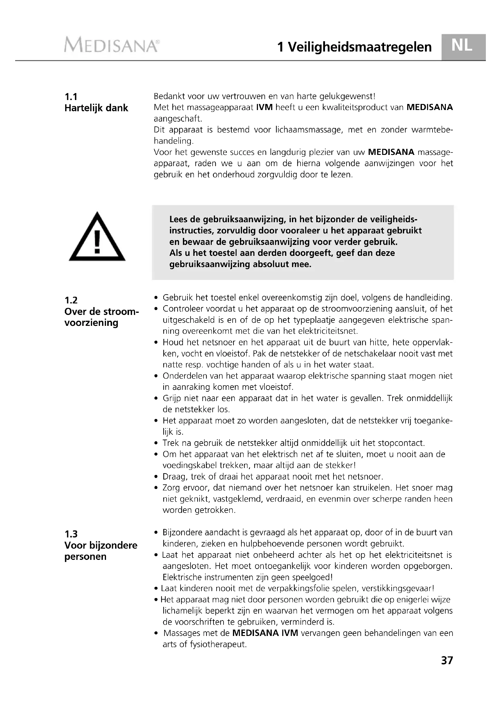 Voor het gewenstesucces en langdurig plezier van uw MEDISANA massageapparaat, raden we u aan om de hierna volgende aanwijzingen voor het gebruik en het onderhoud zorgvuldig door te lezen.