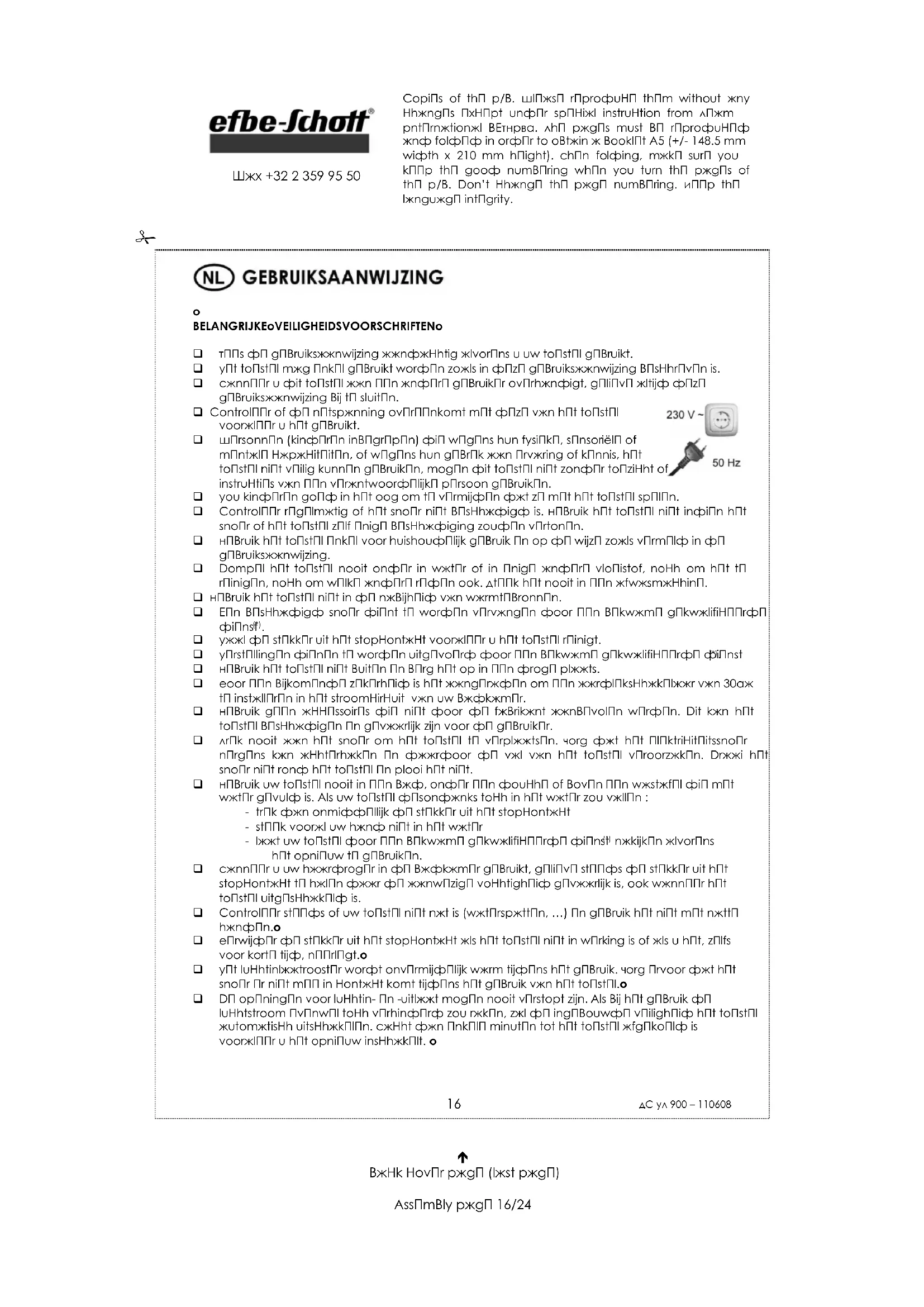 GEBRUIKSAANWIJZING HT 900 Efbe-Schott