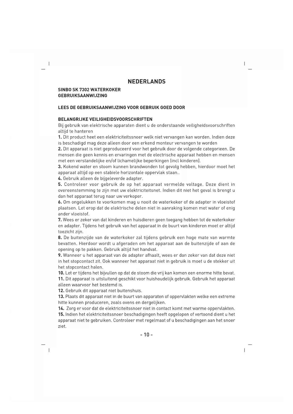GEBRUIKSAANWIJZING SK7302 SINBO