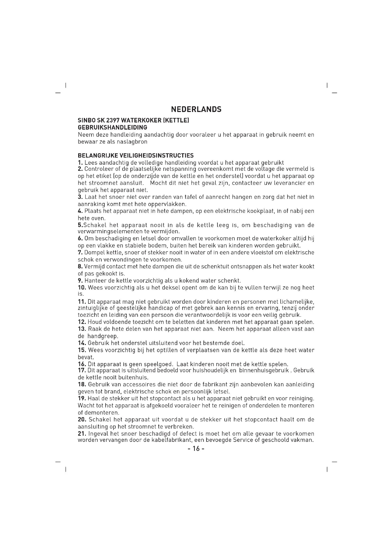 GEBRUIKSAANWIJZING SK2397 SINBO