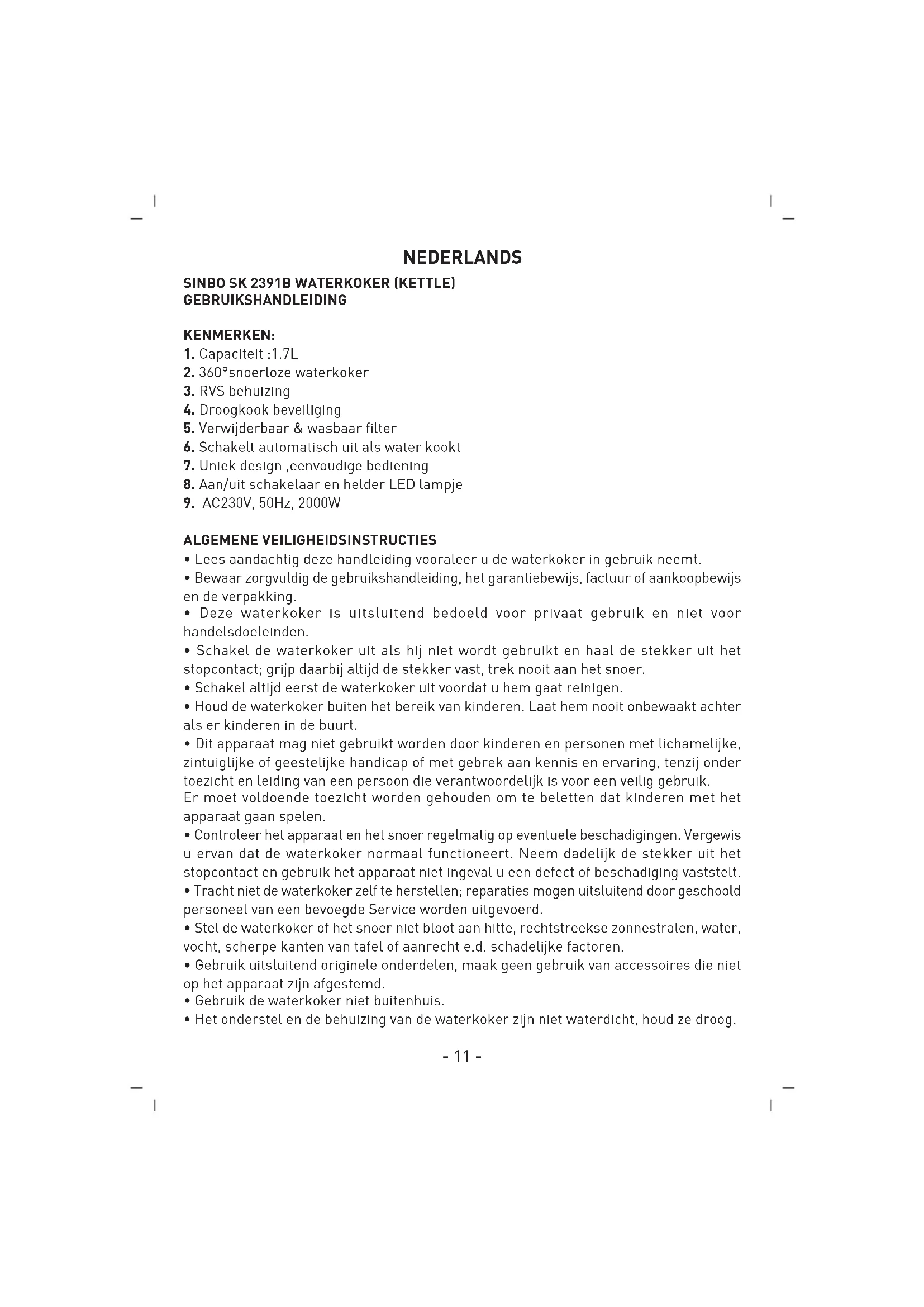 GEBRUIKSAANWIJZING SK2391 SINBO