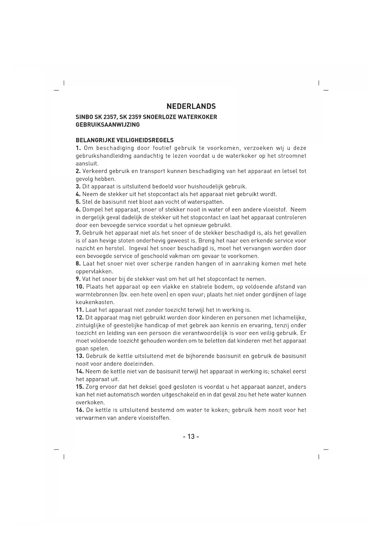 GEBRUIKSAANWIJZING SK2357 SINBO