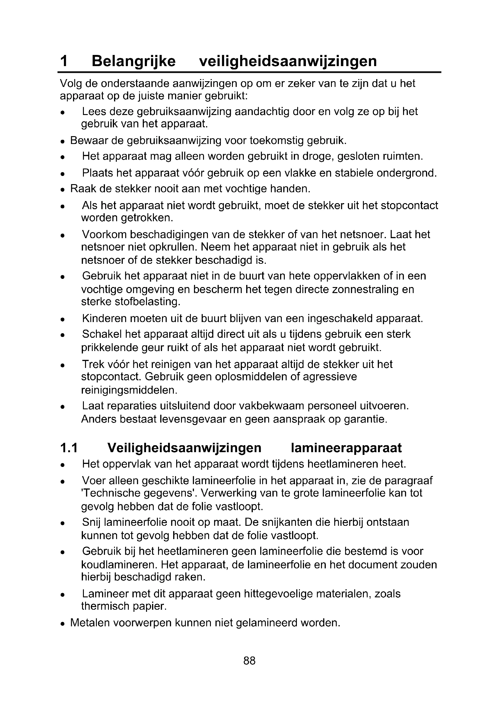 1.1 Veiligheidsaanwijzingen lamineerapparaat.............................. 88