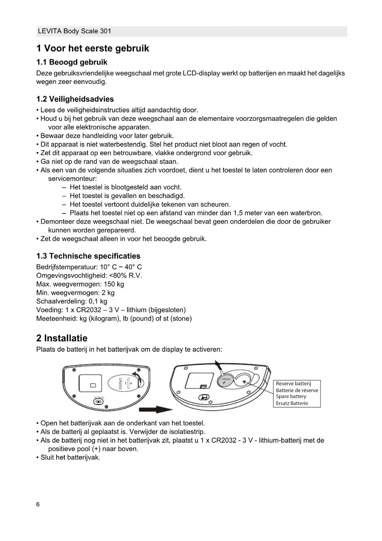 GEBRUIKSAANWIJZING Body Scale 301 Levita