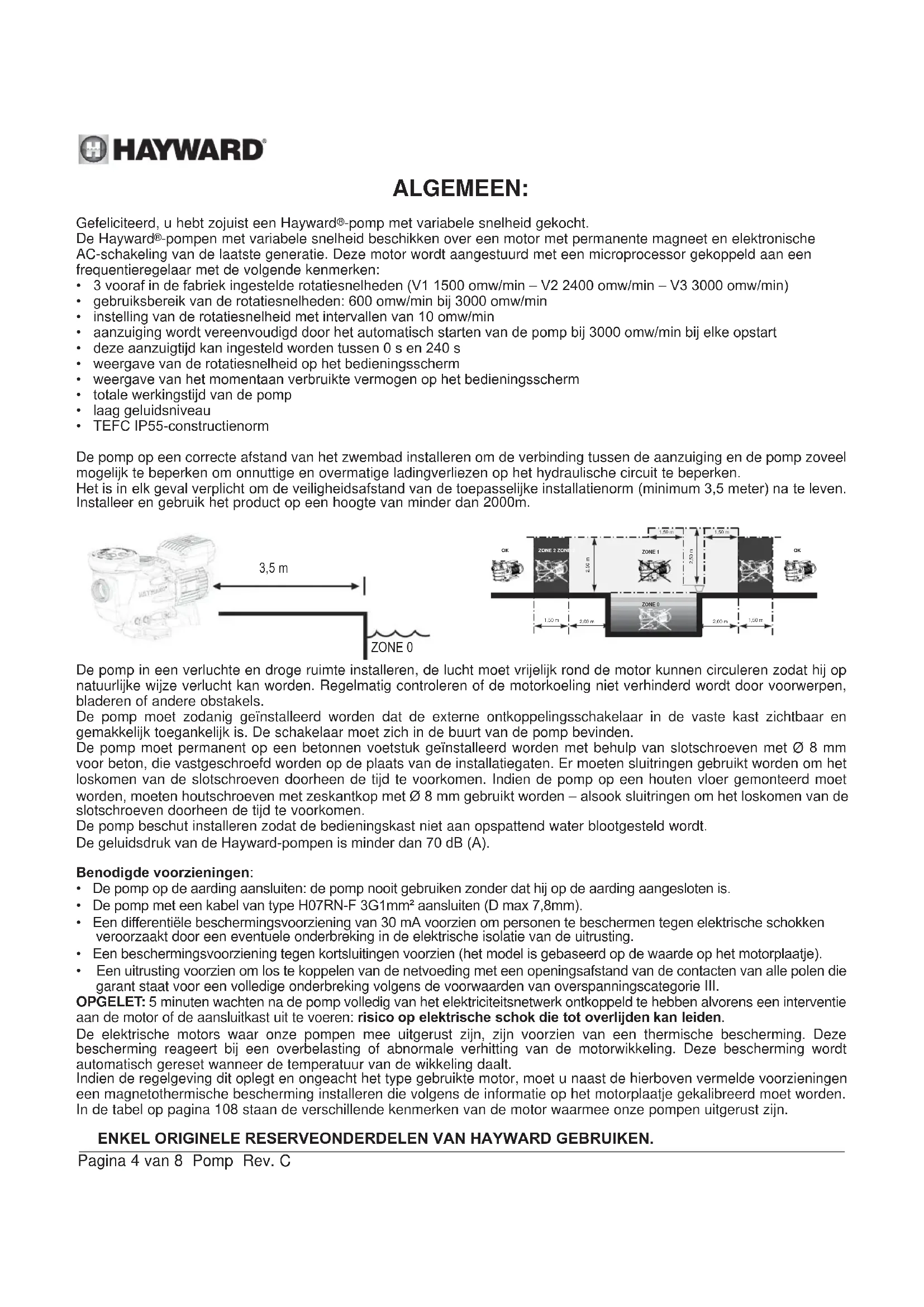 Pagina 4 van 8 Pomp Rev. C ALGEMEEN: Gefeliciteerd, u hebt zojuist een Hayward