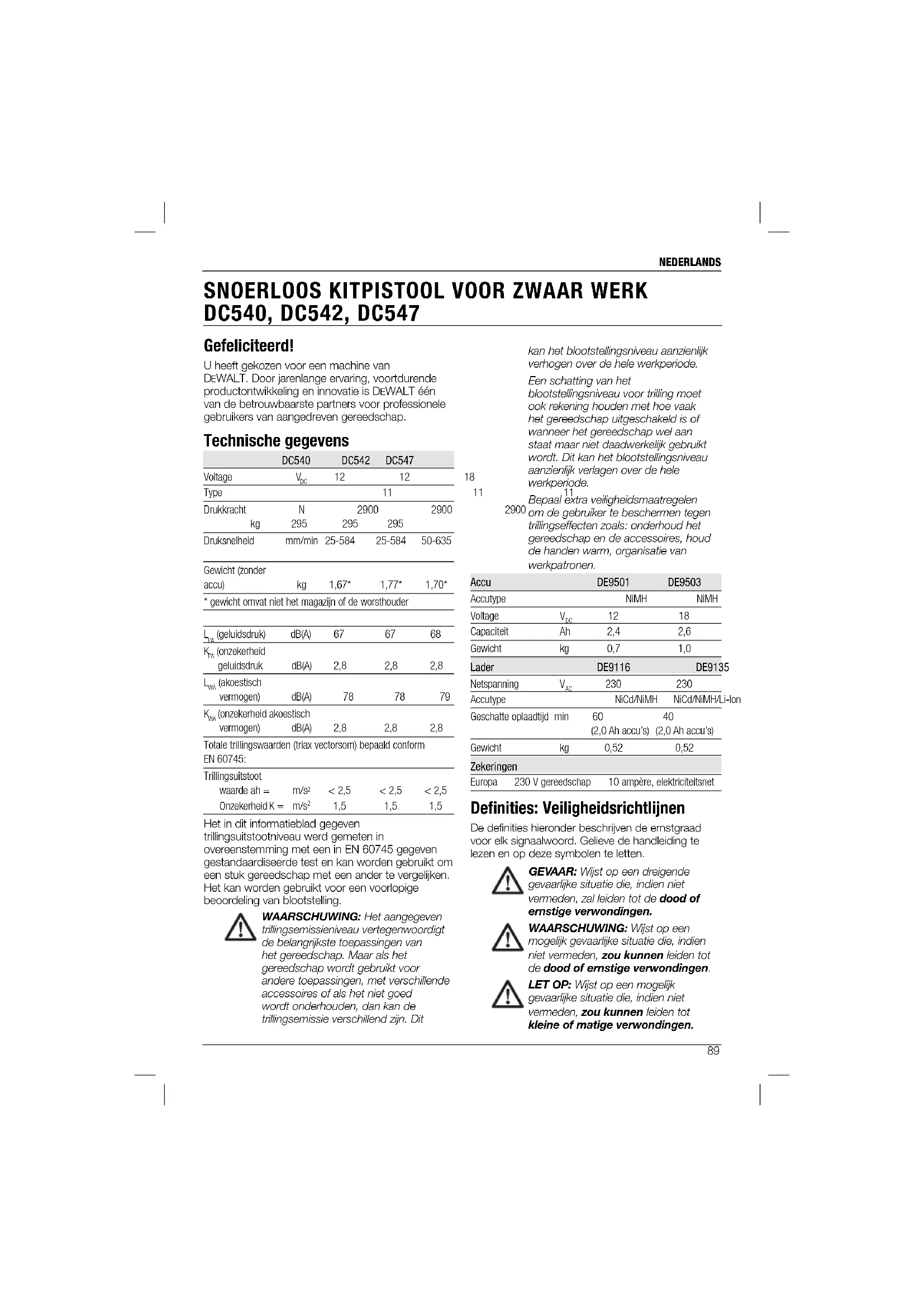 GEBRUIKSAANWIJZING DC540 DEWALT