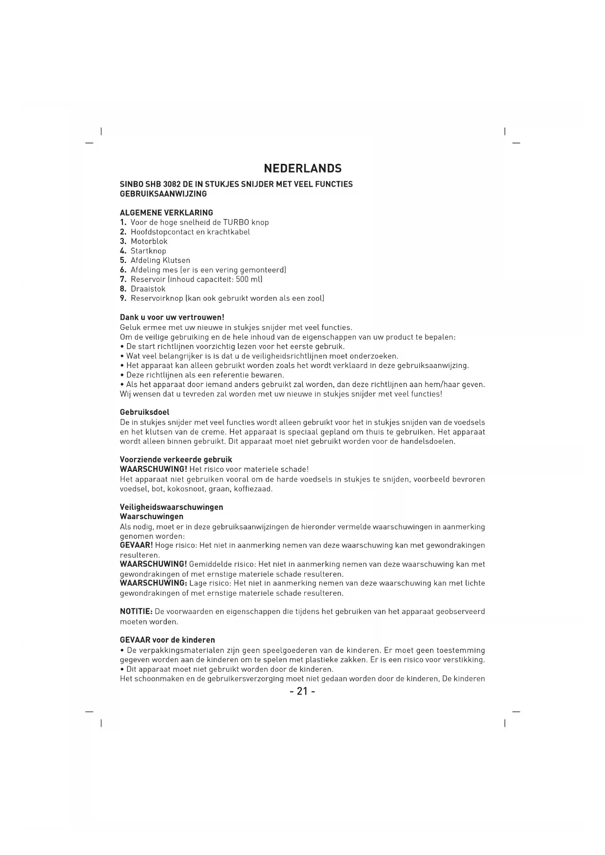 GEBRUIKSAANWIJZING SHB 3082 SINBO
