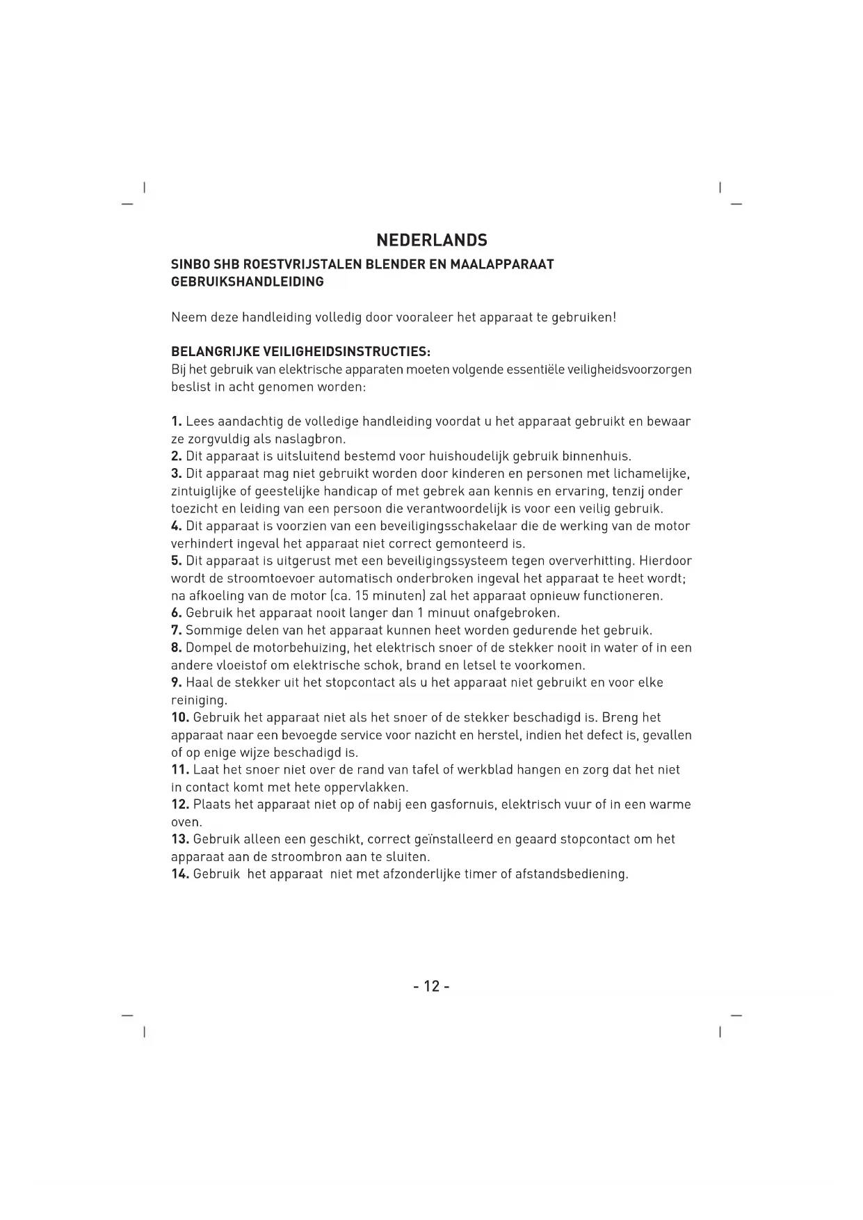 GEBRUIKSAANWIJZING SHB 2054 SINBO