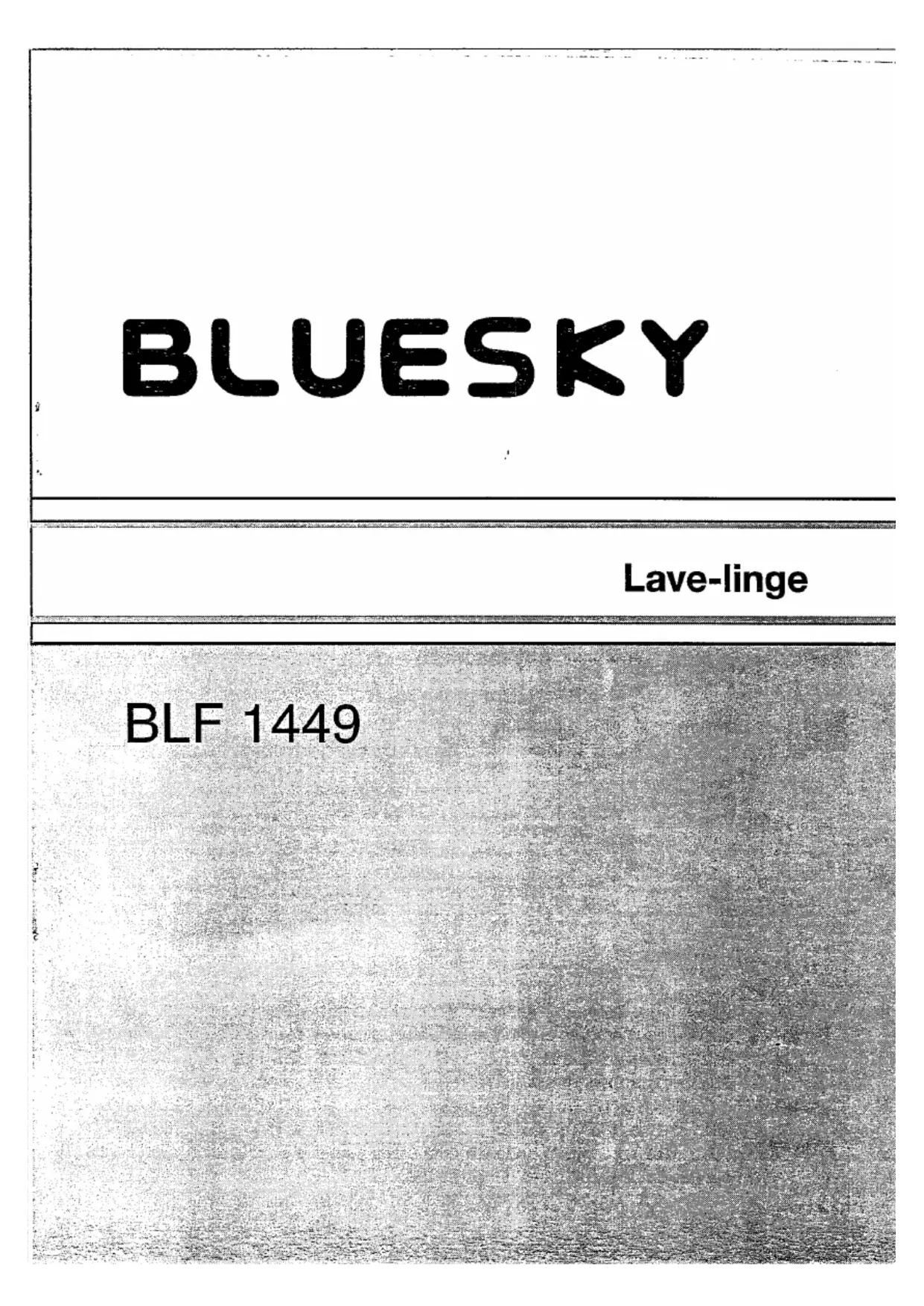 Download de handleiding voor uw Wasmachine in PDF-formaat gratis! Vind uw handleiding BLF 1449 - BLUESKY en neem uw elektronisch apparaat weer in handen. Op deze pagina staan alle documenten die nodig zijn voor het gebruik van uw apparaat. BLF 1449 van het merk BLUESKY.