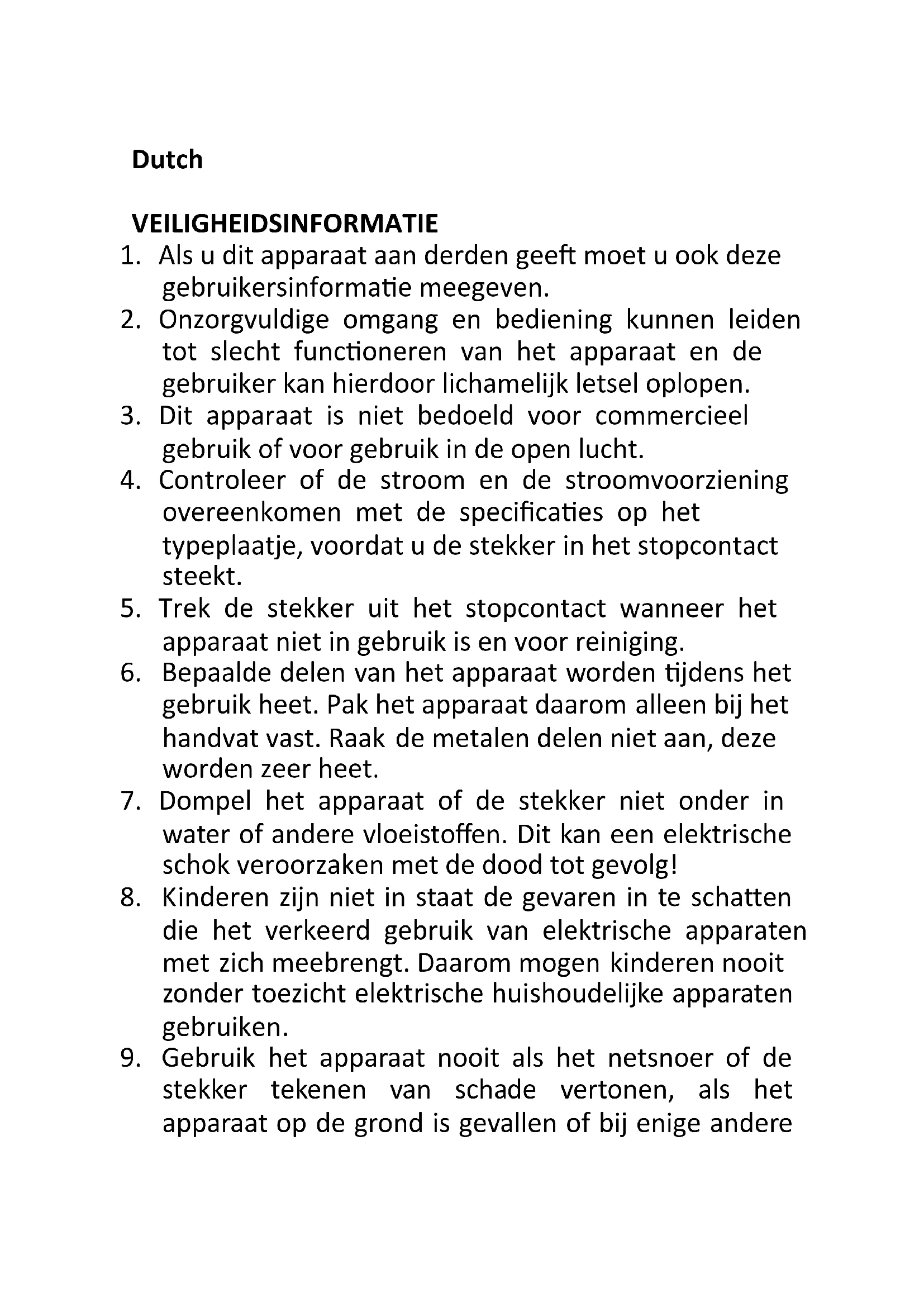 - Kinderen zijn niet in staat de gevaren in te schatten die het verkeerd gebruik van elektrische apparaten met zich meebrengt. Daarom mogen kinderen nooit zonder toezicht elektrische huishoudelijke apparaten gebruiken.
