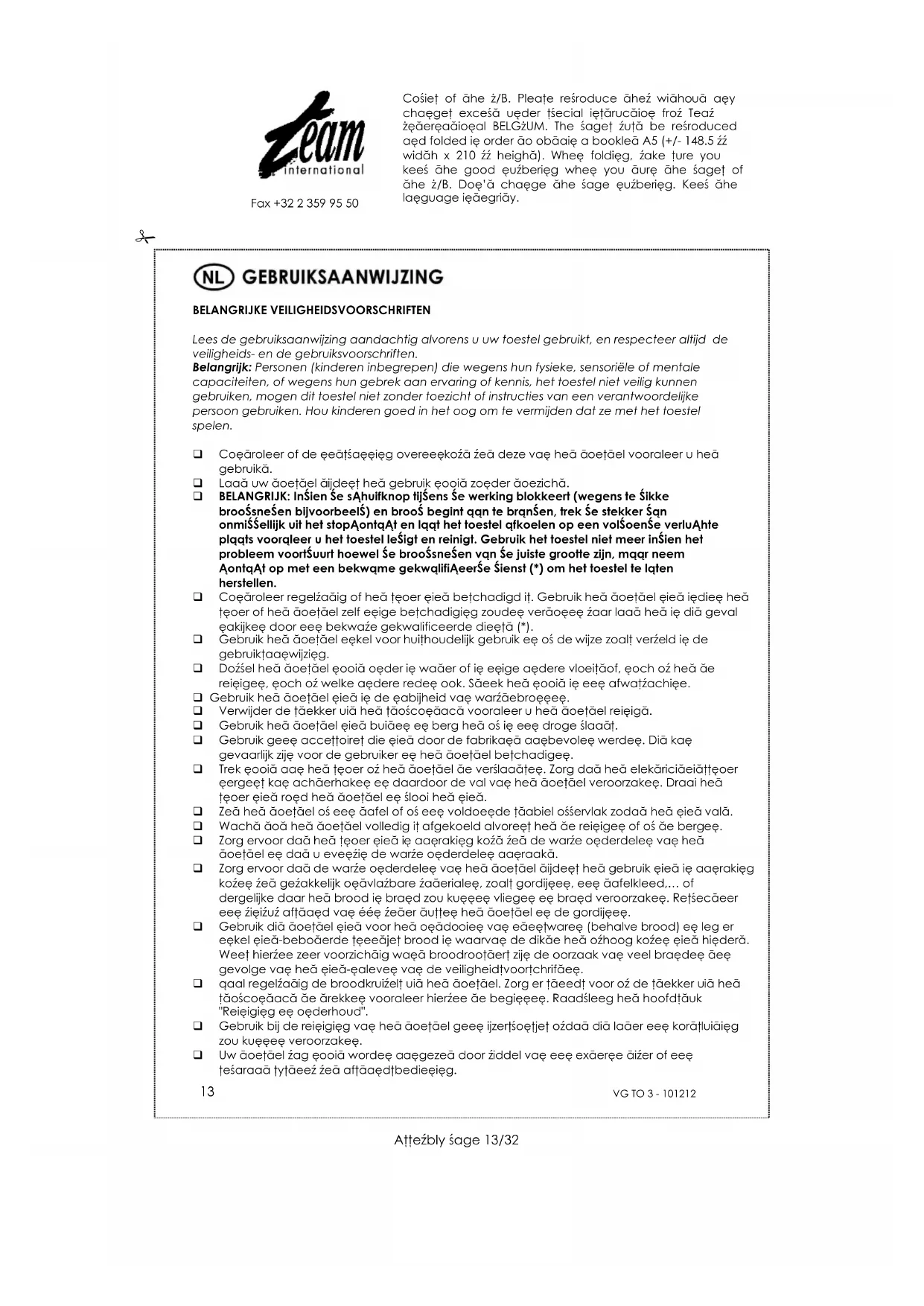 Gebruik gee accettoire die eiea door de fabriaca aaebevolee werdee. Dia ka gevaarlik zije voor de bruiker ee hea aoetel belchadigee.