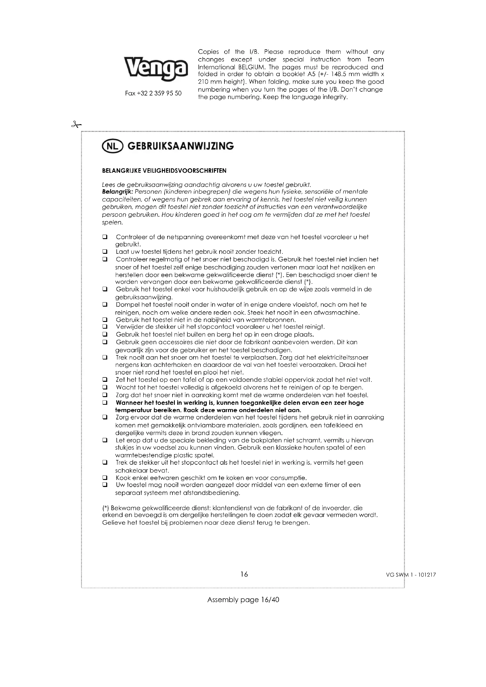 GEBRUIKSAANWIJZING VG SWM 1 Venga