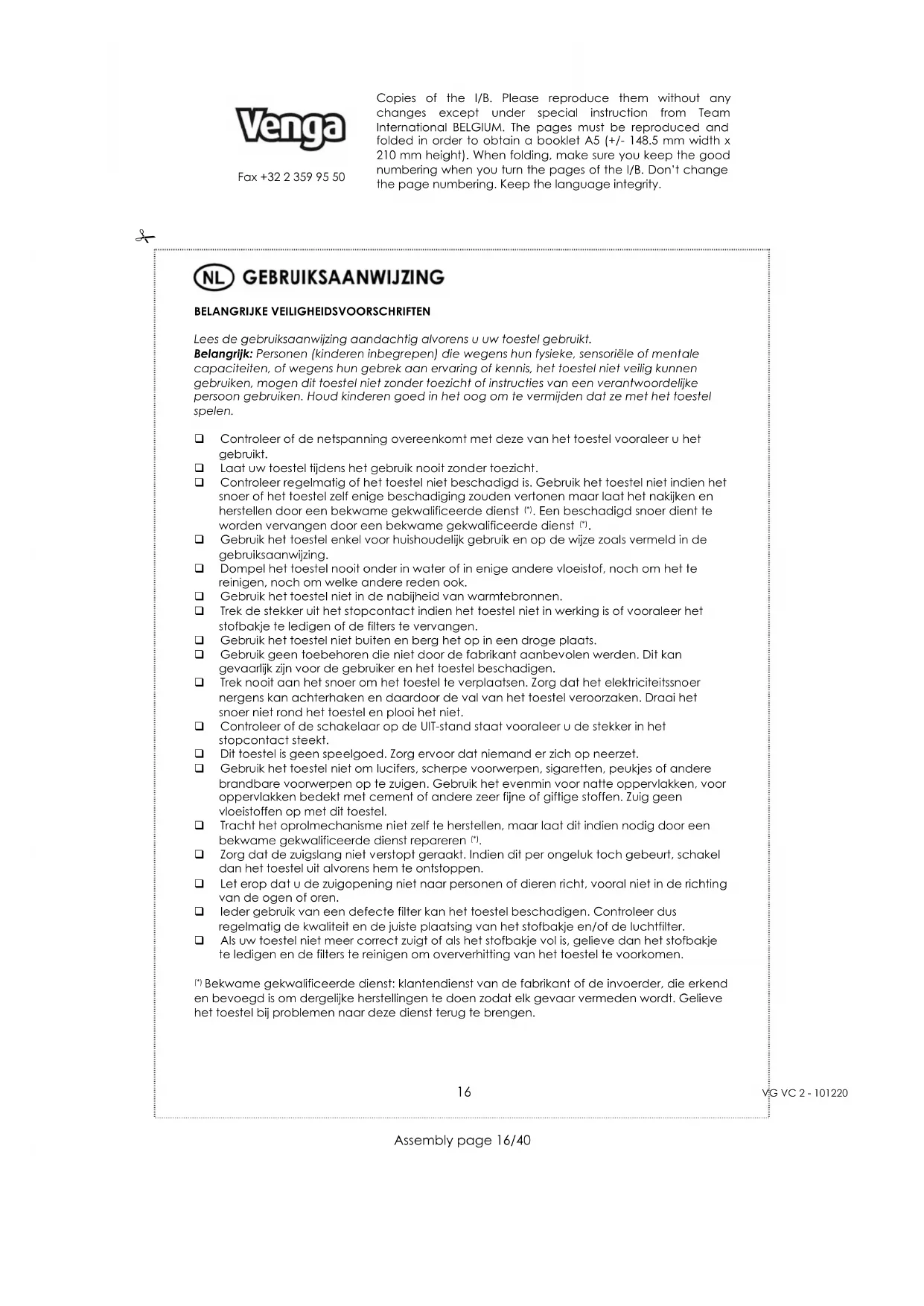 GEBRUIKSAANWIJZING VG VC 2 Venga