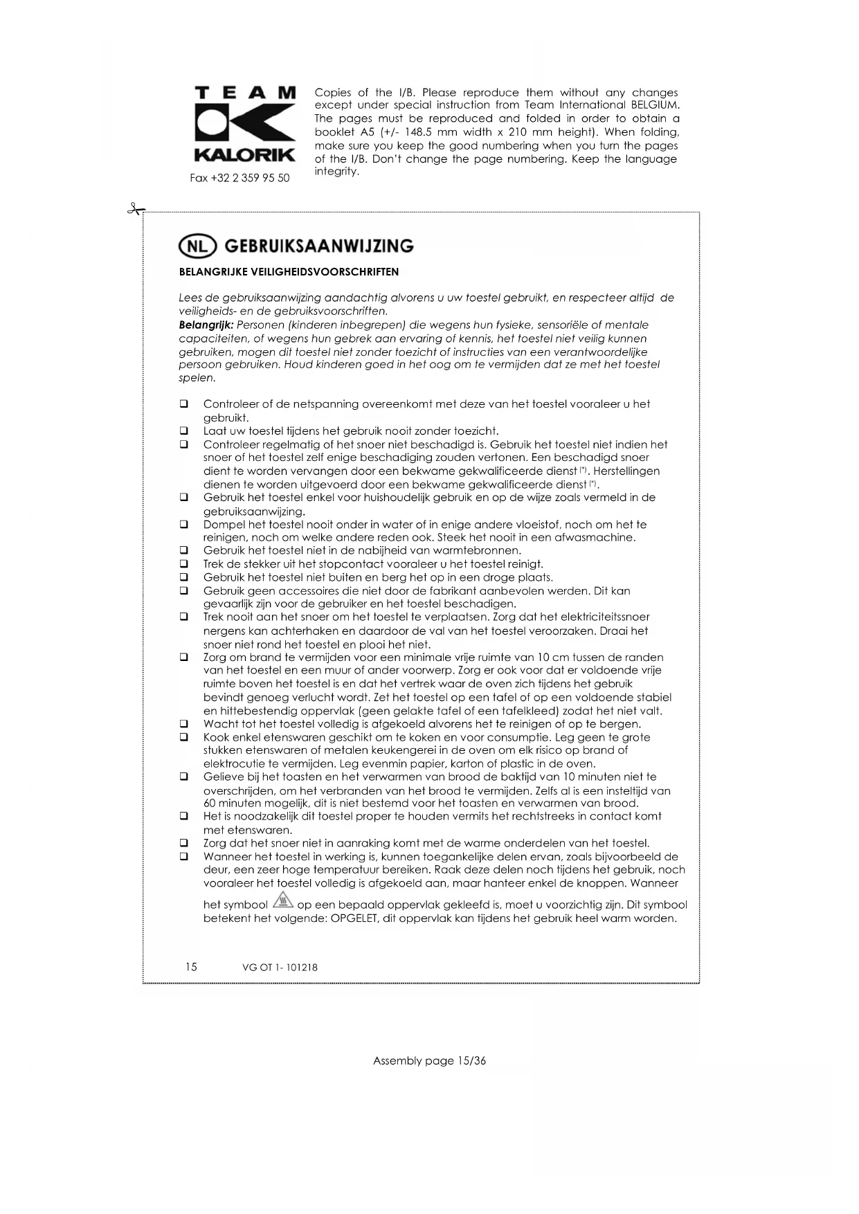 11 Bekwame gekwalificeerde dienst: klantendienst van de fabrikant of de invoerder, die erkend en bevoegd is om dergelijk herstellingen te doeon zodat elk gevaar vermeden worden. Gelieve het toestel bij problemenaar deze dienst terug te brengen.