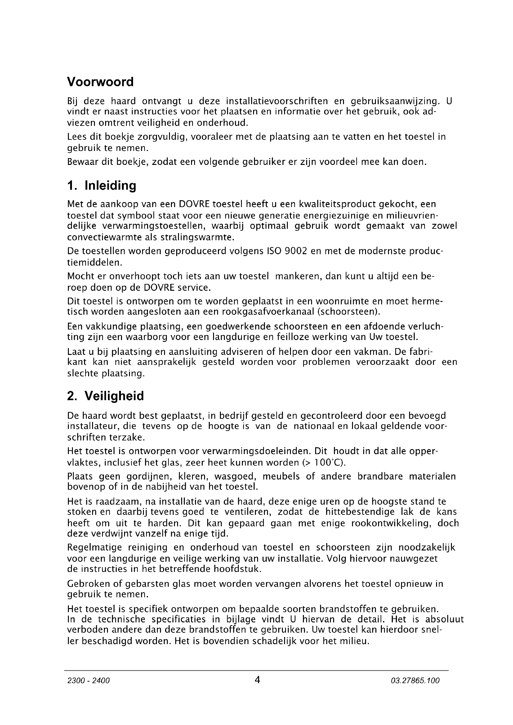 Bij deze haard ontvangt u deze installmentievoorschriften en gebruiksaanwijzing. U vindt er naast instructies voor hetplaatsen en informatatie over het gebruik, ook adviezen omtrent veriligheid en onderhoud.
