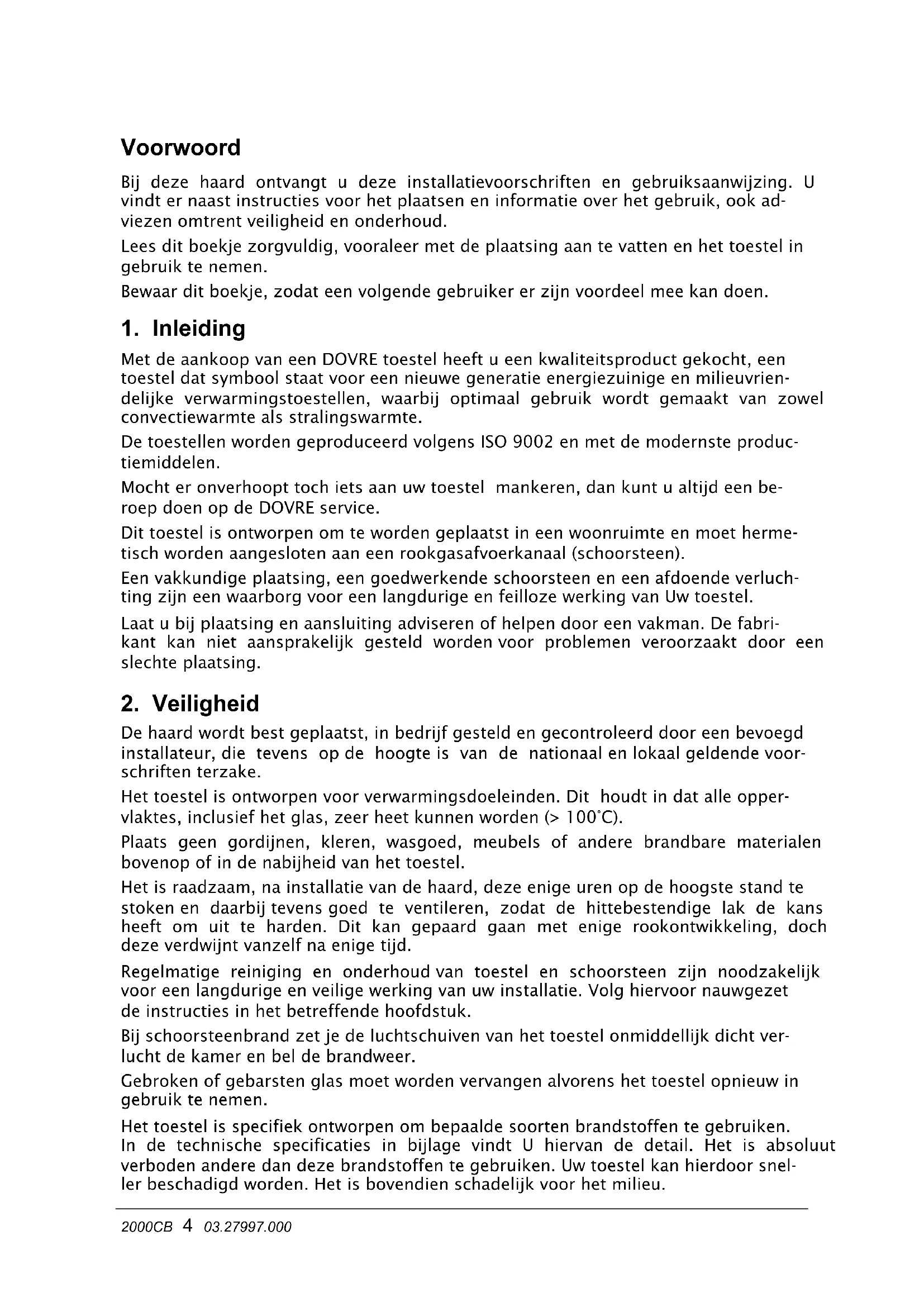 Bij deze haard ontvangt u deze installmentievoorschriften en gebruiksaanwijzing. U vindt er naast instructies voor hetplaatsen en informatie over het gebruik, ook adviezen omtrent verilgheid en onderhoud.