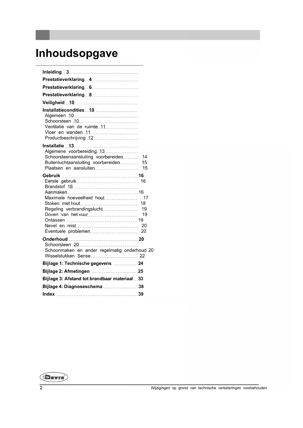 In deze handleiding leest u hoe u het DOVRE verwarmingstoestel op een veilige manier installeert, gebruikt en onderhoudt. Als u aanvullende informatie of technische gegevens wilt of een installatie-probleem heeft, neemt u dan eerst contact op met uw leverancier.