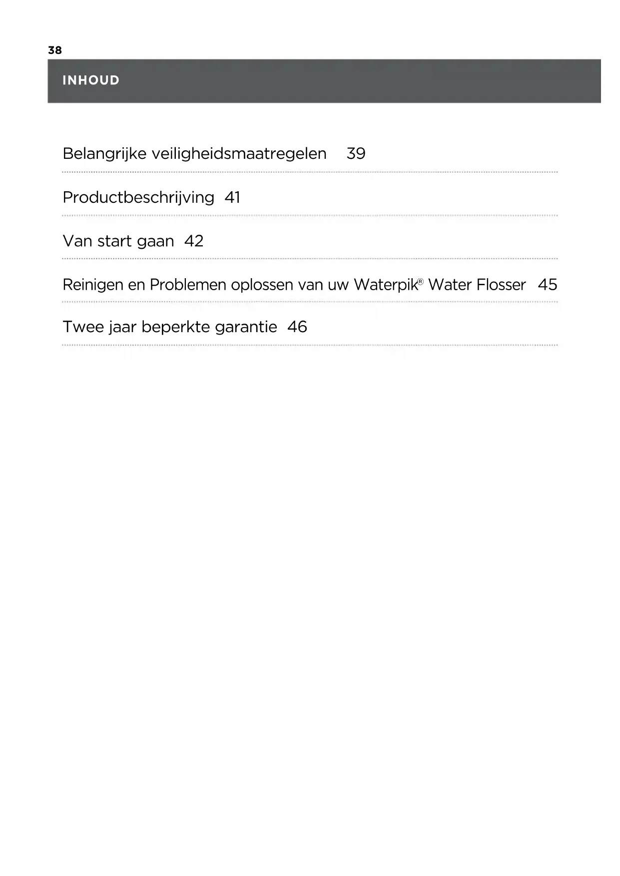 - Alleen tips en accessoires gebruiken die aanbevolen zijn door Water Pik, Inc.
