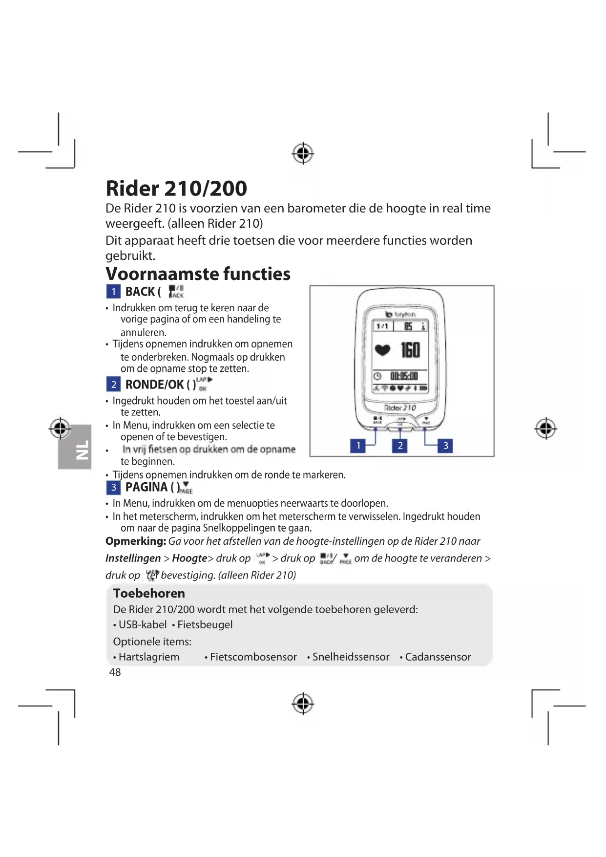 GEBRUIKSAANWIJZING Rider 200 Bryton