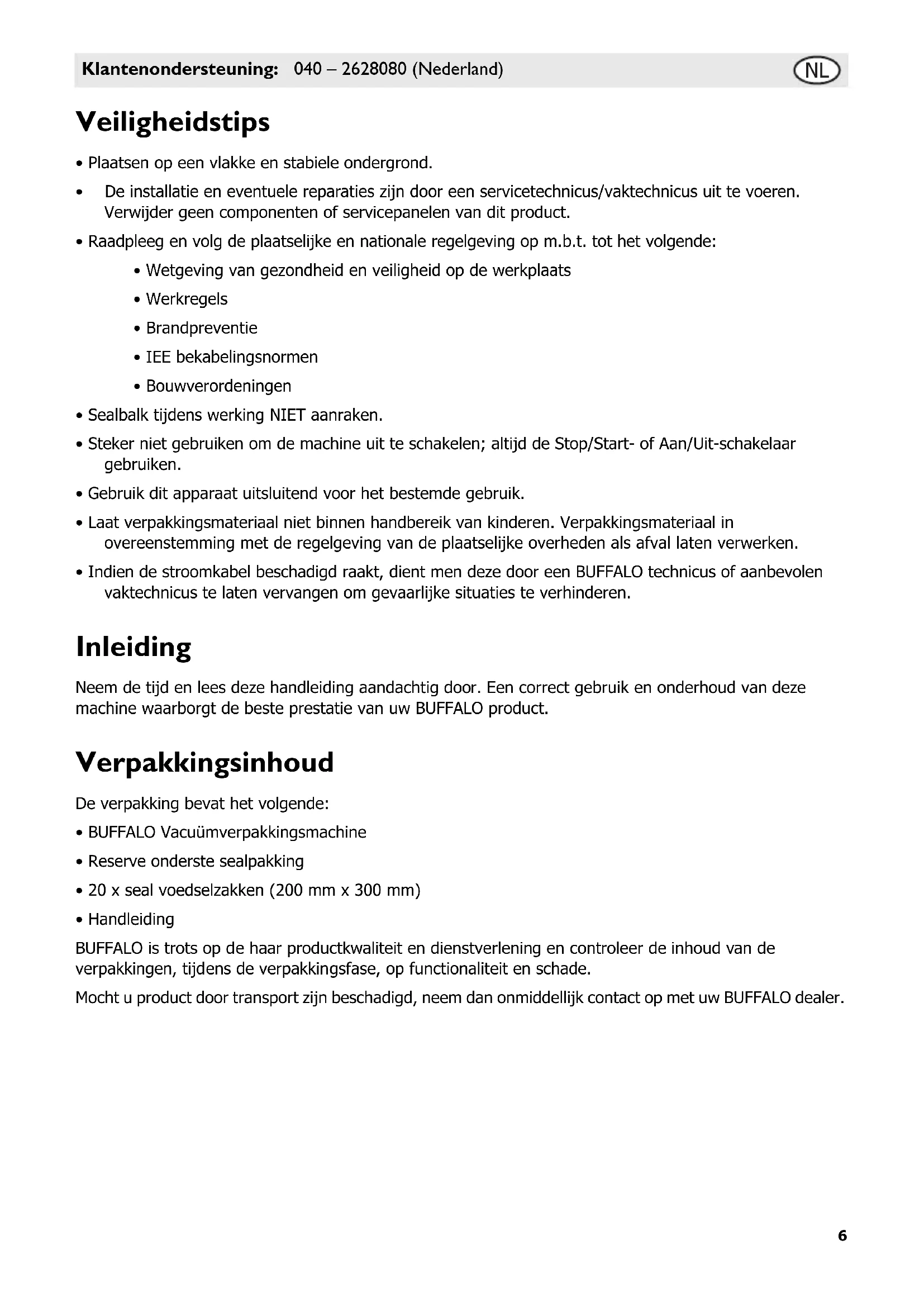 Mocht u product door transport+zijn beschadigd,neem dan onmiddelijk contact op met uw BUFFALO dealer.