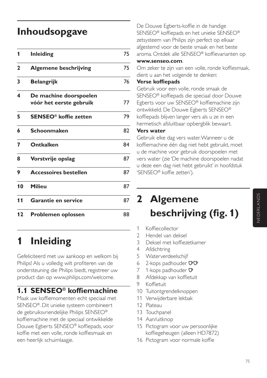 GEBRUIKSAANWIJZING SENSEO TWIST BY KENZO TAKADA HD7870/91 PHILIPS